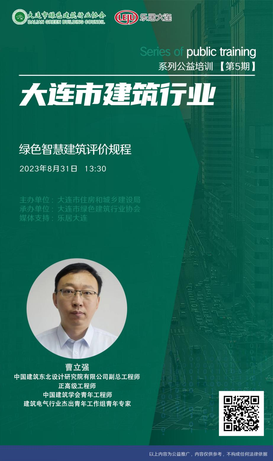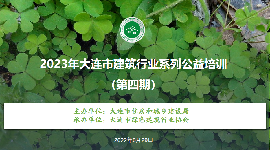 近日,由大连市住房和城乡建设局主办,大连市绿色建筑行业协会承办的2023年大连市建筑行业系列公益培训(第五期),暨绿建公益沙龙(第204期)成功举办。