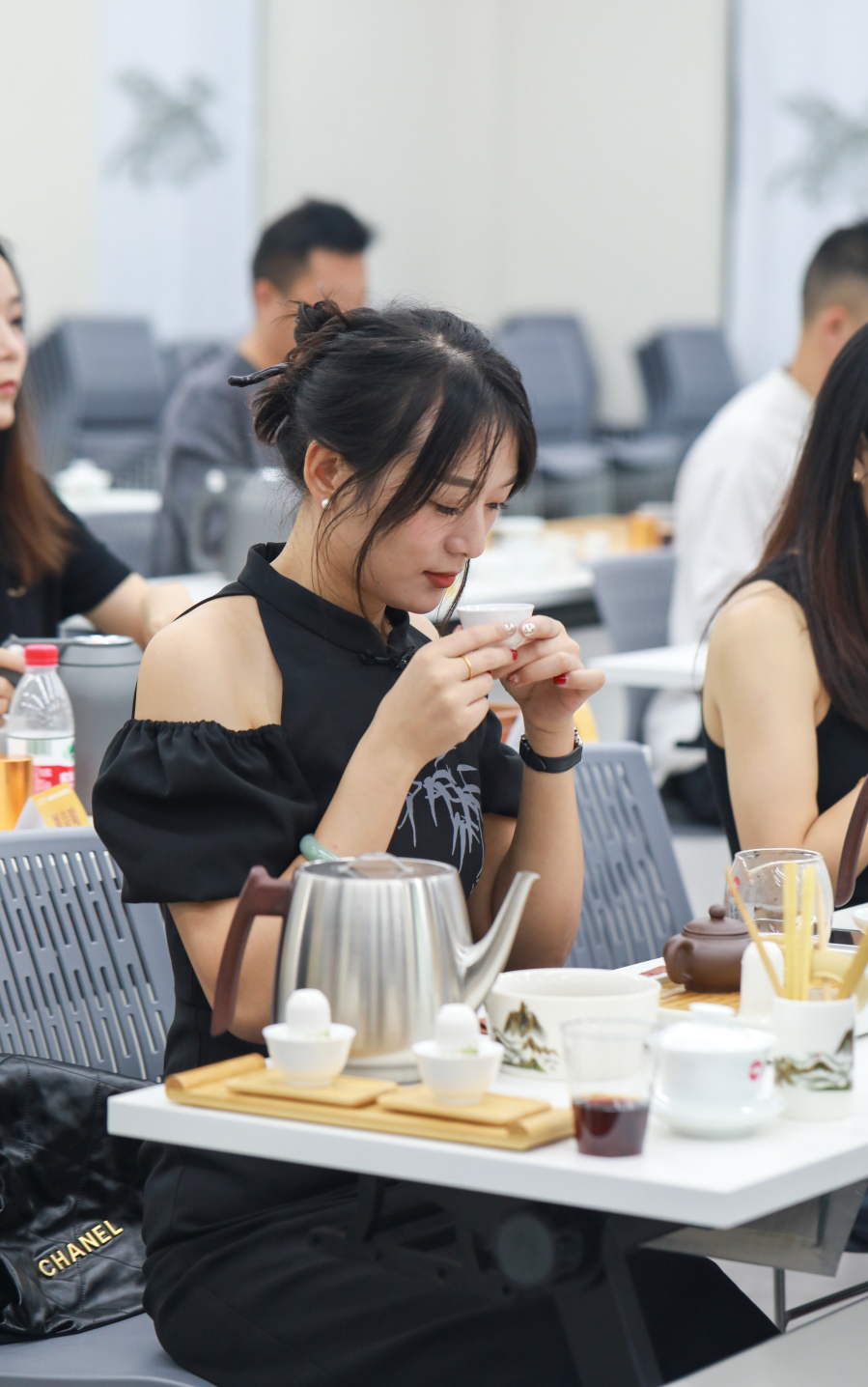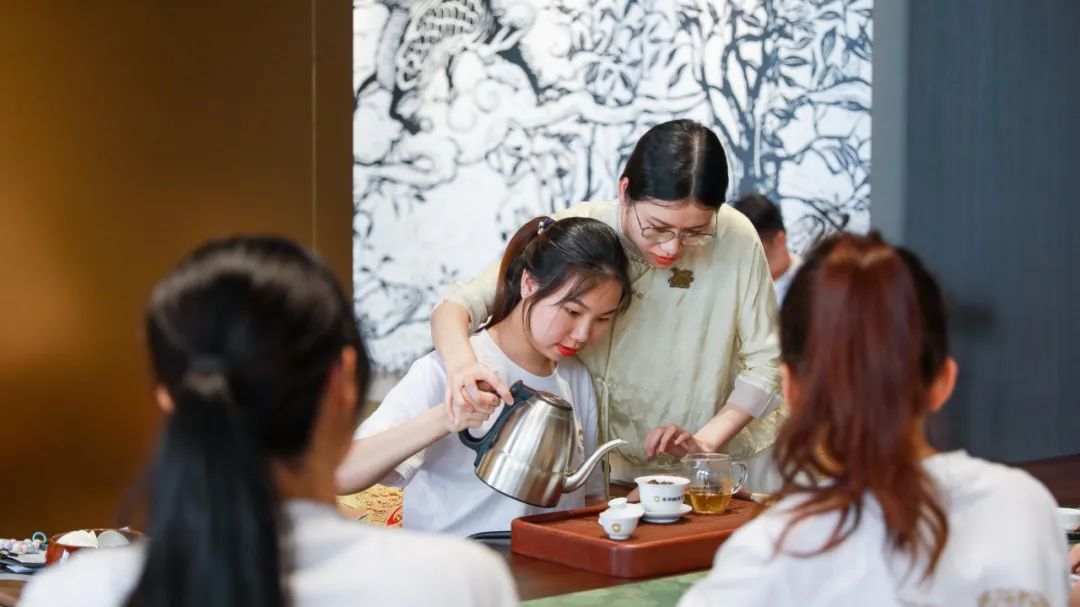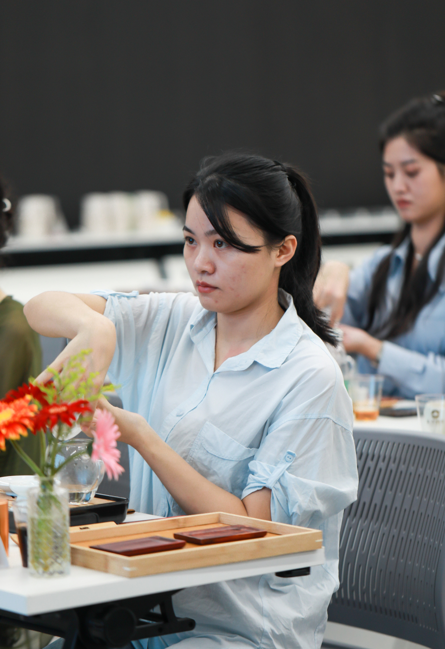 在冲泡学习的实操环节,祝敏欢老师用台上演示结合台下指导答疑的方式,引导学员将理论知识融会贯通。茶香悠扬,润物无声,在温杯、投茶、注水、等一系列有条不紊的动作中,学员逐渐得心应手起来,在这个悠扬淡雅的课堂上,探寻茶的真味与意境。