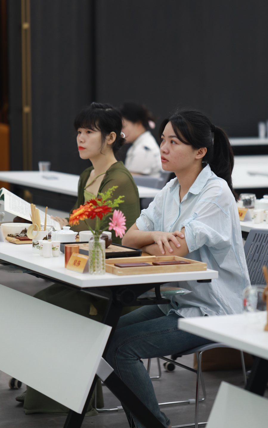 课堂上,何维珍老师将茶的数千年历史娓娓道来,复杂的知识点被深入浅出地阐述讲解。学员们端坐在台下,用书面笔记、手机拍照的方式方便知识梳理巩固,努力将知识熟记于心,整个课堂充满了求知思考的氛围,学员在此享受学习乐趣,感受千年茶知识的庞大力量。