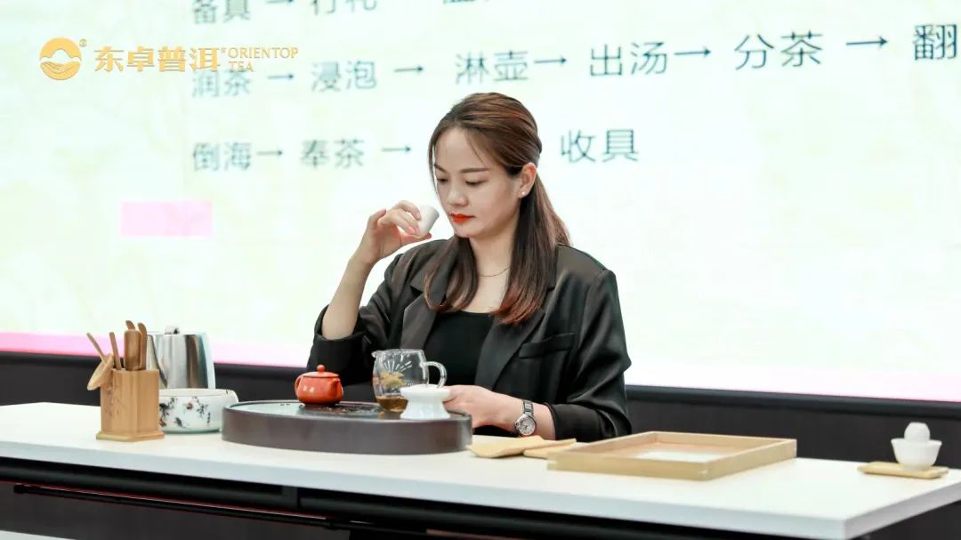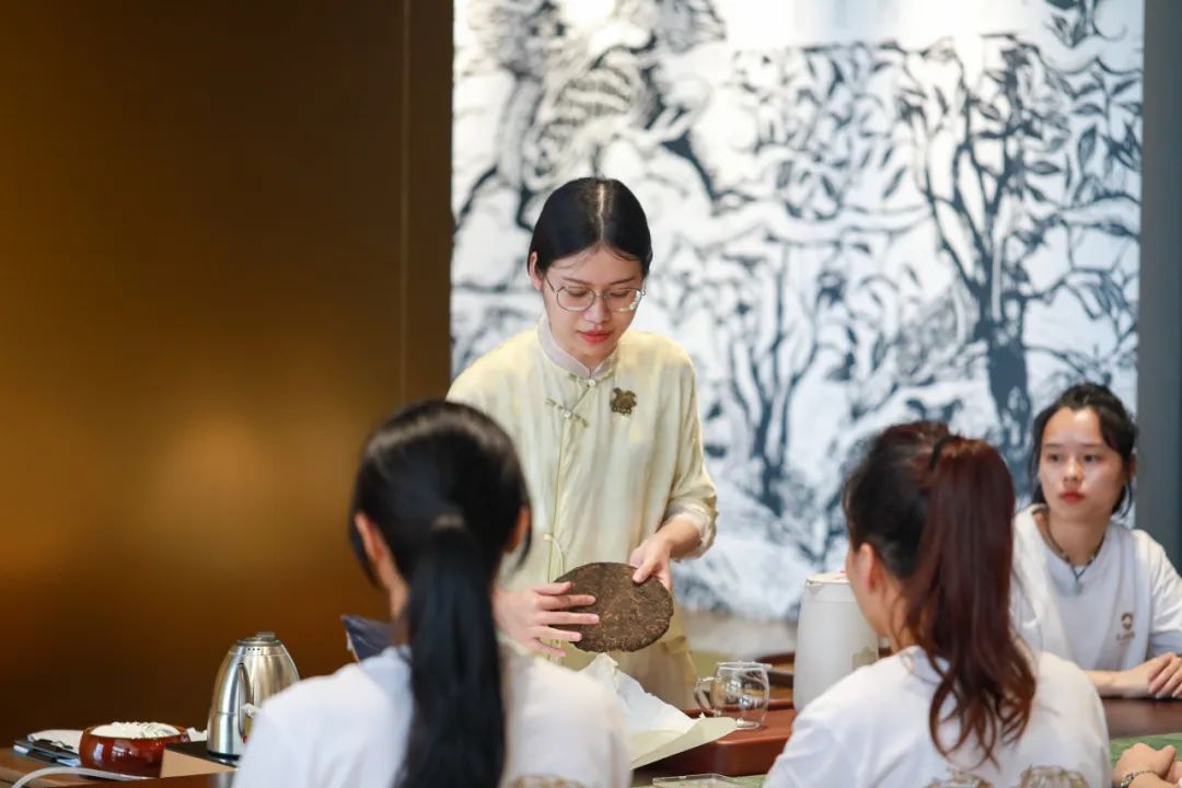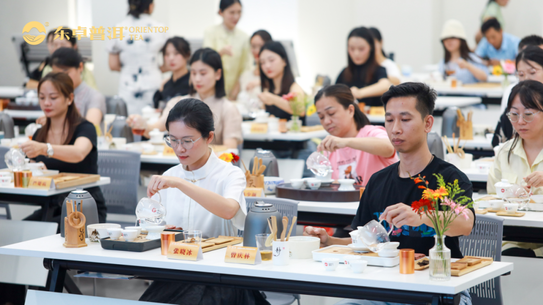 从企业文化讲到门店销售服务,从普洱茶知识学习到风味标准实操,课程全方位导入培训,尽情展现专业、贴心、极具竞争力的高端普洱茶服务价值。整个培训过程更是紧凑饱满,培训老师条理清晰地传递知识点,参训学员们心无旁骛地听讲,记录学习,现场洋溢着浓厚的学术气息。