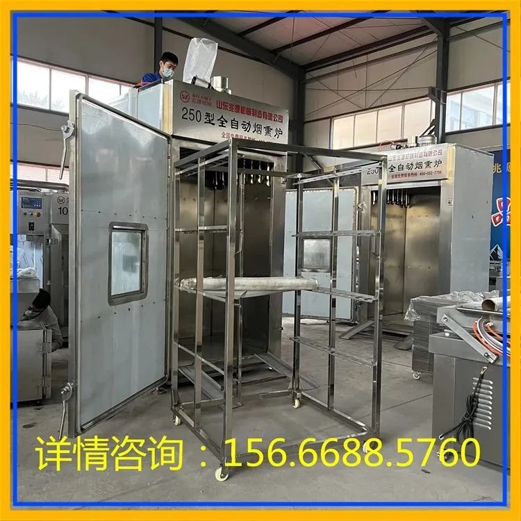 500型红肠烟熏炉,老火腿加工设备,巴氏杀菌流水线厂家是制作各种香肠、海产品、熏鸡、烤鸭等肉食品不可缺少的设备之一,在食品行业里或者是在肉制品加工过程中应用都是非常广泛的,话说,烟熏炉这个设备从开始的研制到现在的广泛应用已经经过十几年的时间了,通过有关的专家们不断的改进和对国内外技术的融合,老火腿加工设备具有蒸煮、干燥、烘烤、烟熏、上色等功能,有着非常良好的节能效果。国内外均有悠久的历史,烟熏指的是用相应的木材不完全燃烧时生产成的挥发性物质进行熏制的过程。肉制品烟熏的目的是使肉制品脱水,富裕产品特殊的香味。改善肉的颜色并且有一定的杀菌防腐和抗氧化作用,以延长肉制品的保质期。