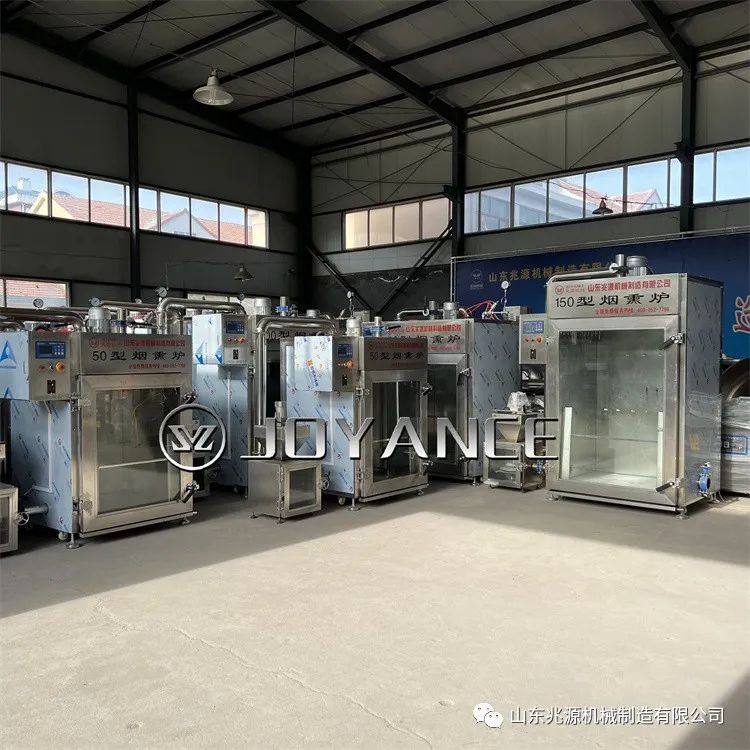 1.150型全自动香肠烟熏炉封闭式操作不污染环境,不伤害操作人员,占地面积紧凑,排烟时间短。