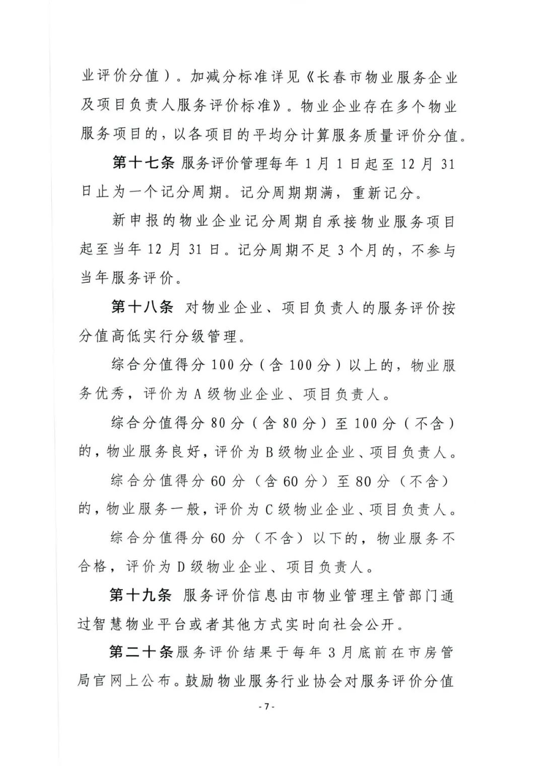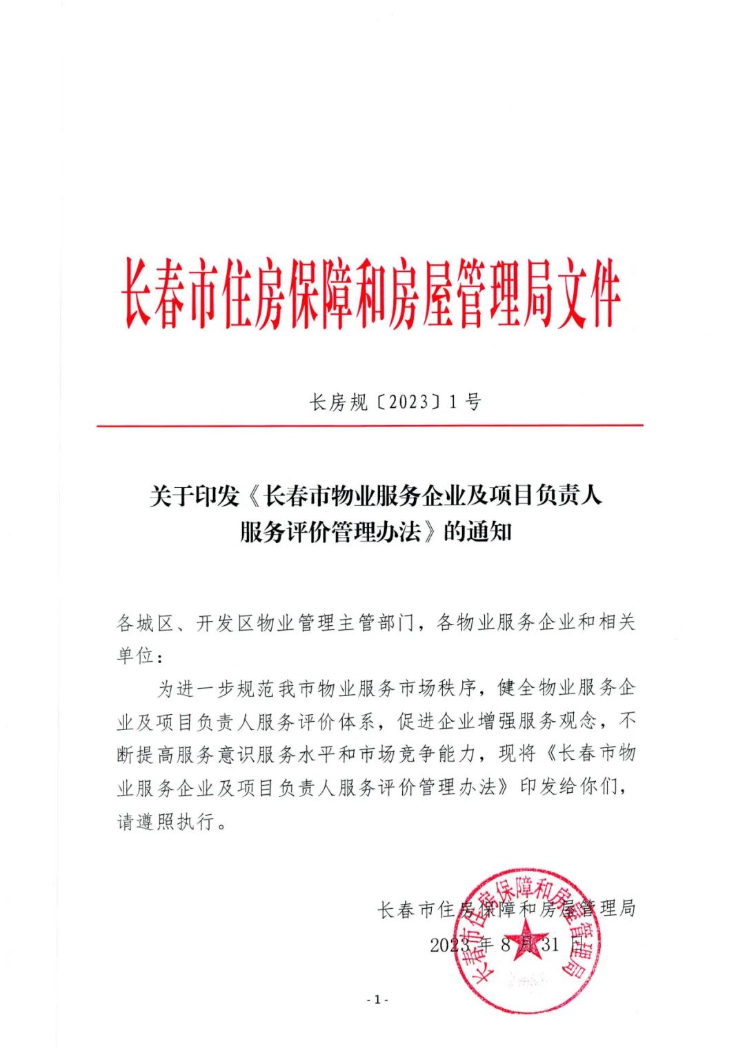 【长春物协—行业资讯】关于市房管局印发《长春市物业服务企业及项目负责人服务评价管理办法》的通知