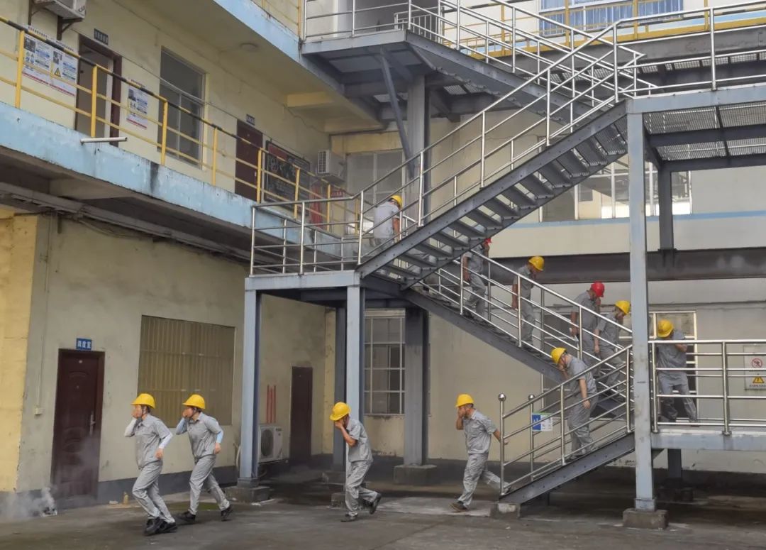 在模拟火灾逃生环节,随着警报铃声响起,各部门负责人迅速组织本部门职工,按照应急预案快速、有序并准确运用火灾逃生技巧“半弓腰、掩嘴鼻、紧贴墙、沉着有序”逃离火灾现场,撤离到达指定安全区域。