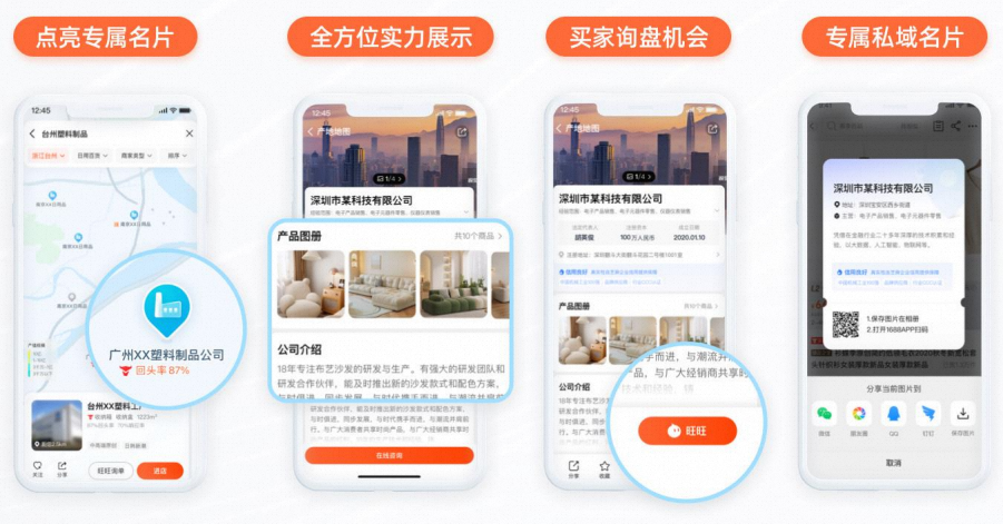 除微观企业的个体信息外,1688产业带地图的另一个创新之处在于,其可对某一产地开展宏观产地层面的综合分析,并结合AI算法,解构用户需求,帮助商家探寻细分的行业商机。产地地图会对某一产业带进行评级和综合描述。例如,针对台州塑料制品,1688产业地图结合行研信息,呈现为“中国塑料制品王国、中国三大塑料制品生产基地之一”,同时罗列详尽的产地数据,如“该产地全国塑料制品的产量约2000万吨,产量占全国同行业1/7”。还反馈产地市场近期搜索热度情况,如线下、线上、跨境、企业用户、个人用户的采购比例,近期的新品上新数量、访问询盘人数等等。此外,产地地图还会通过采购助手,对下游趋势、行业爆款、用户画像、潜力品类等进行分析,帮助商家挖掘市场机会。03 1688产业带数字地图成为数字时代市场源头寻厂的“新公器”从应用前景和社会价值的角度看,1688产业带数字地图的出现,对我国源头产业带的数字化转型和系统呈现具有重要的推动意义,进而可成为商家、买家、政府、行业等主体搜索、了解、触达产地市场的重要信息窗口。瞄准信息公共基础设施的建设目标,重构产业生态信息链路,提升产地生意增长效率。(一)实现零成本生意启动,推动产地资源与外部市场的精准对接