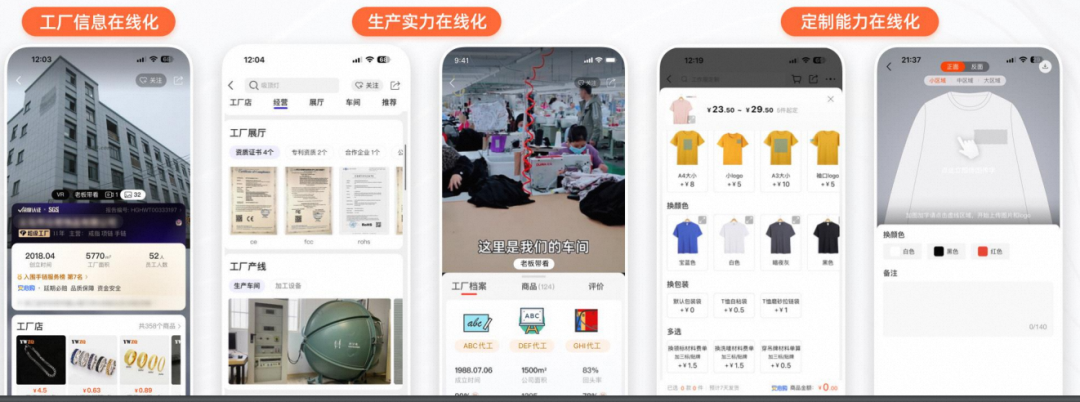 为帮助买家获得更加真实的现场体验感,1688产业带地图通过富模态3D建模,并融合VR技术,实现更加立体、真实的原产地生产制造景象,给买家以足不出户,就可云逛产地的现场体感。例如,通过富模态3D建模,1688产业带地图会通过3D技术,刻画工厂的具体地理方位和厂房外观,搭配周边道路、河流、绿地等外围地理信息。同时,产业带地图针对具体的工厂,还将呈现其生产车间场景、仓库场景,甚至将具体的生产工艺视频呈现给买家。买家可通过VR技术,自主移动方位,考察工厂的生产实景,从而获得最佳的现场考察体感,甚至可与厂长产地连线,由工厂工作人员带看厂房。与此同时,用户还可通过在线的定制功能,实时在线发送制定需求,做到生产制造定制的在线化。(三)依托平台认证,点亮产业带商家的产地专属名片