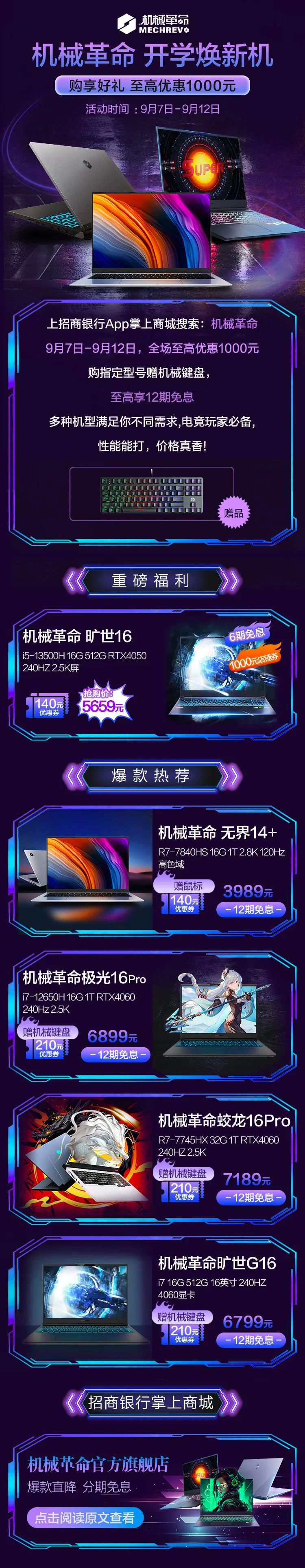 掌上商城机械革命狂欢,至高享12期免息