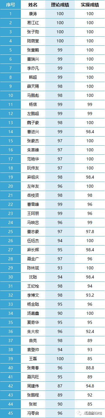 初训实操平均分:95.99555556