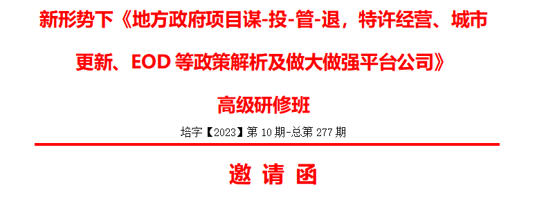 2、内训:可定制专题内训或外训,包括但不限于本主题,例如:乡村振兴项目谋划内训、施工企业转型内训、平台公司转型内训、专项债项目申报全流程内训、财政预算绩效评价内训、国企改革绩效考核内训、各种政策解读内训等等。