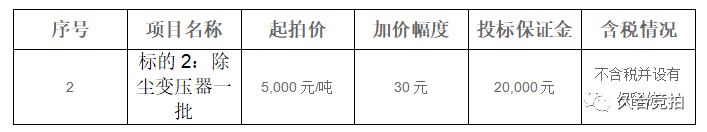 受某单位委托,我公司定于2023年9月12日10时起(延时除外),在中拍平台(https://paimai.caa123.org.cn/)进行标的2:除尘变压器一批。本场拍卖会标的采取同步拍增价式,价高者所得的原则进行拍卖。