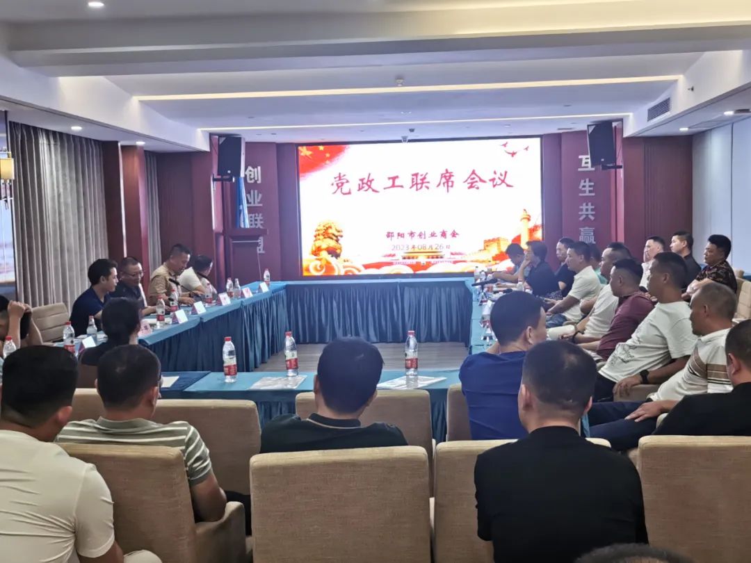 2023年8月26日,邵阳市创业商会召开党政工联席会议,全体党委委员、理事会成员和工会委员参加了会议,会议由党委副书记、秘书长姚遥主持。