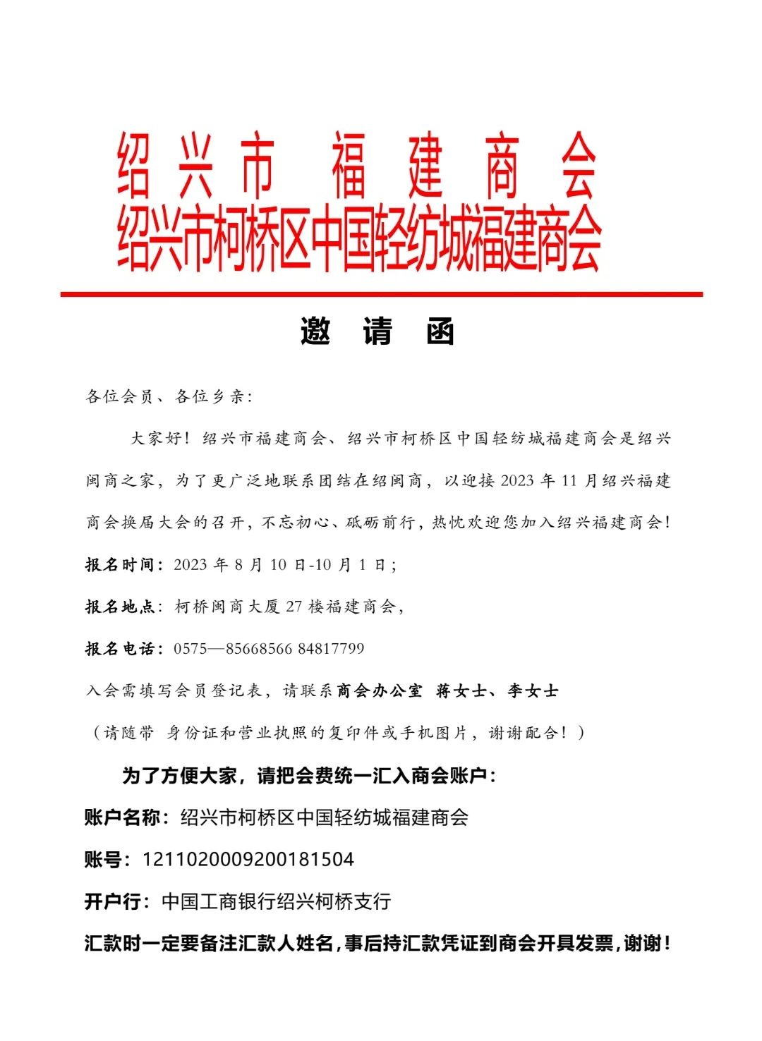 商会地址:柯桥闽商大厦27楼