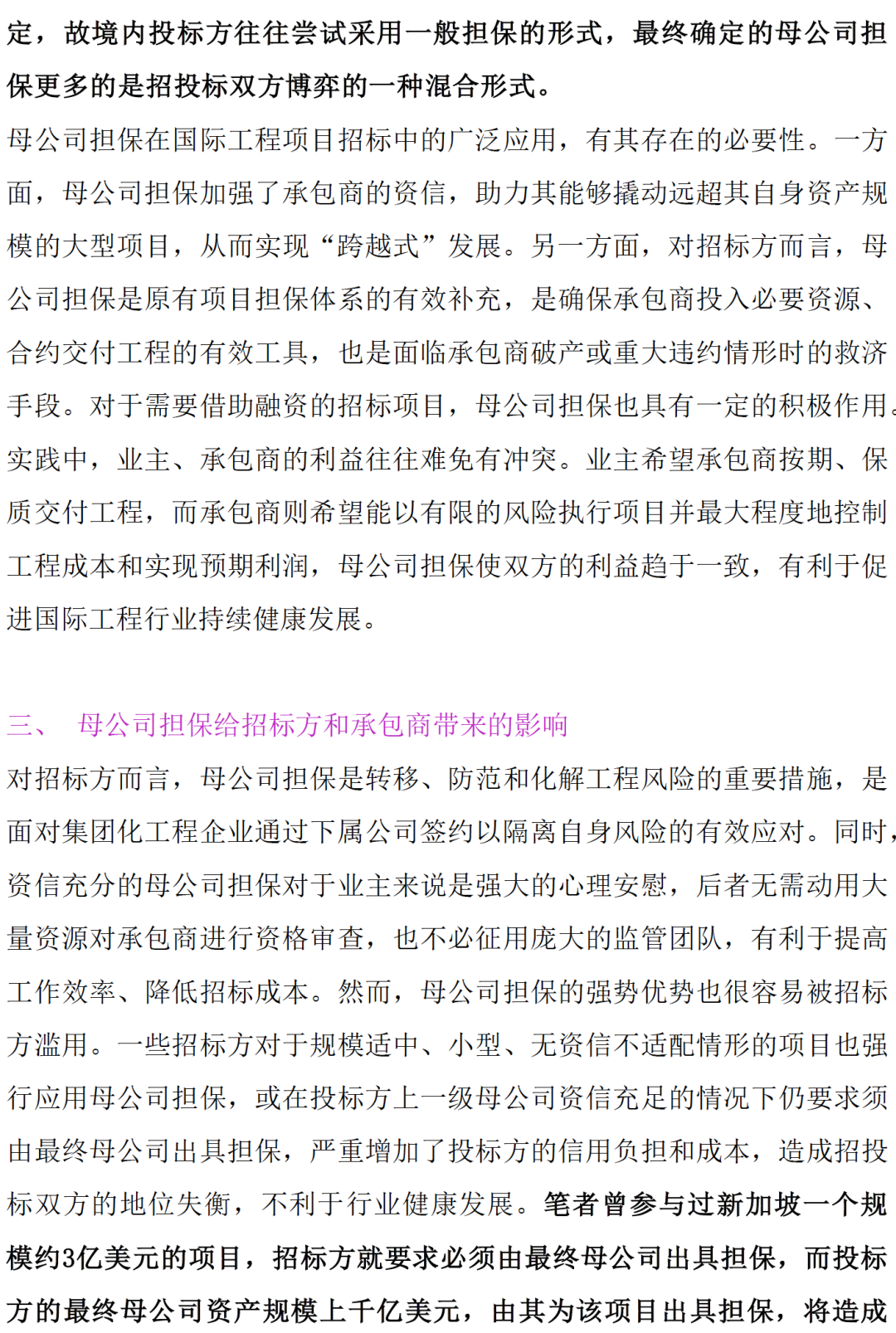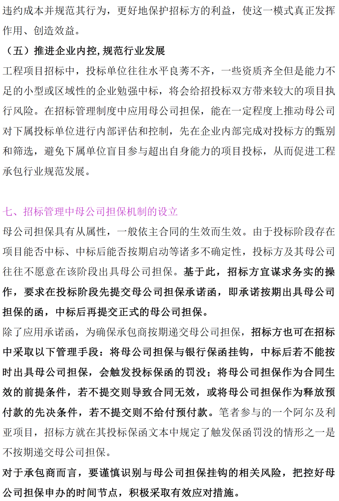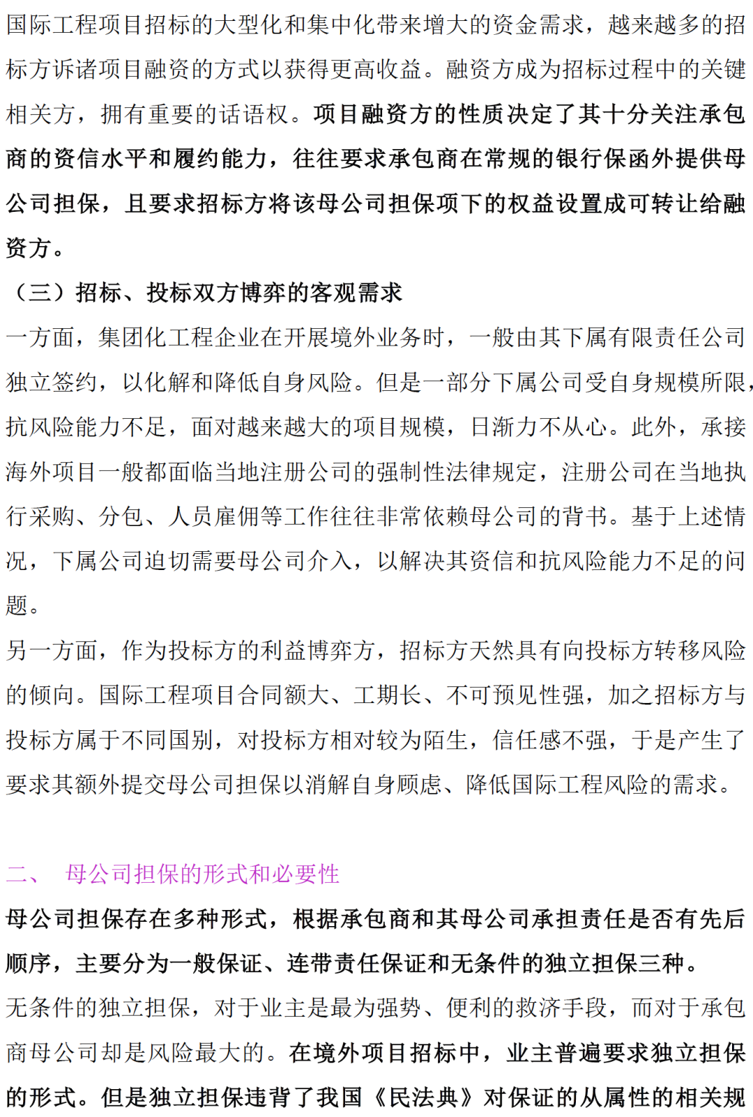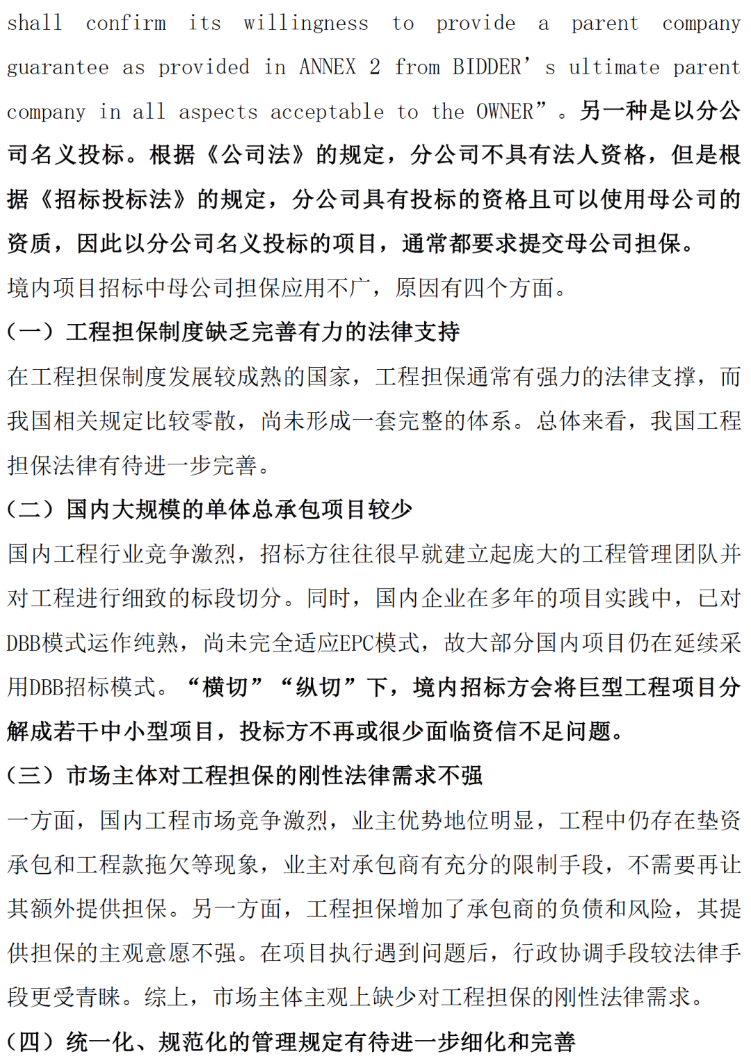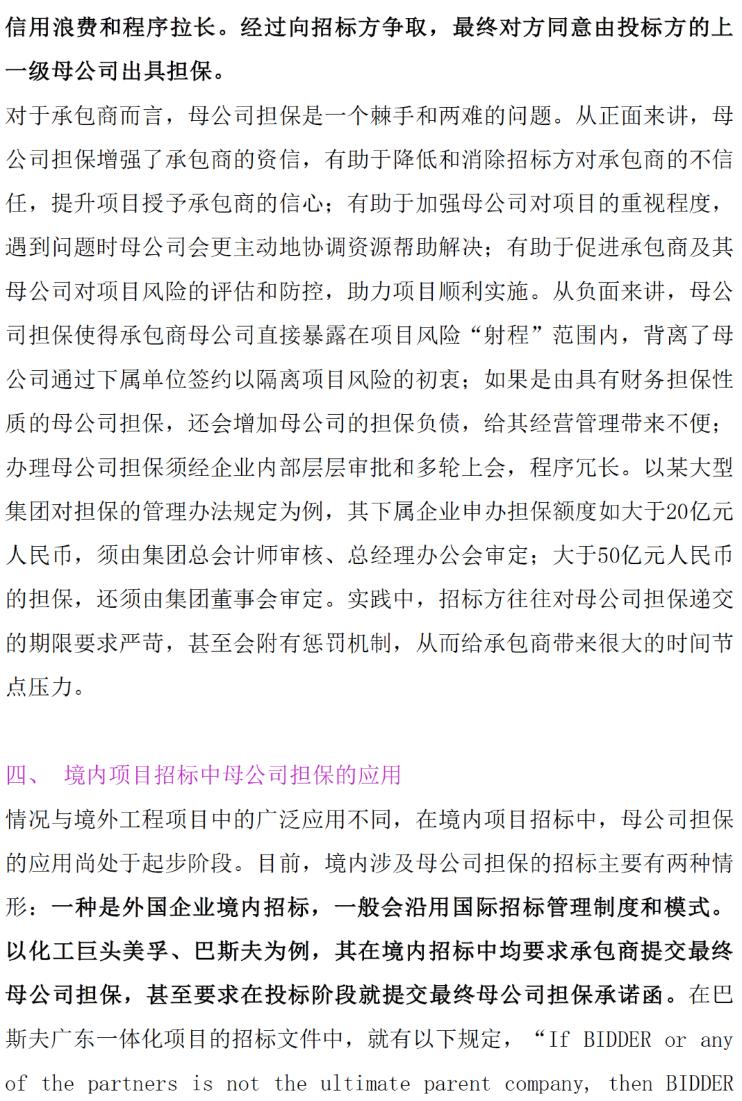境内工程项目招标管理中母公司担保的创新应用