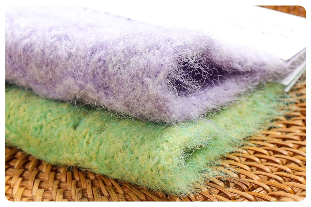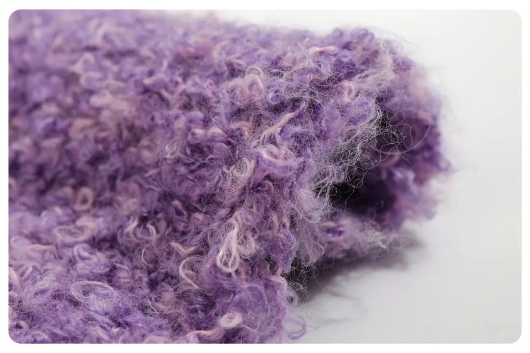 表面毛绒感强,厚实耐磨,柔软度非常好,蓬松感极强,成衣轻盈有质感,适合各类毛衣、开衫、围巾、帽子等 。