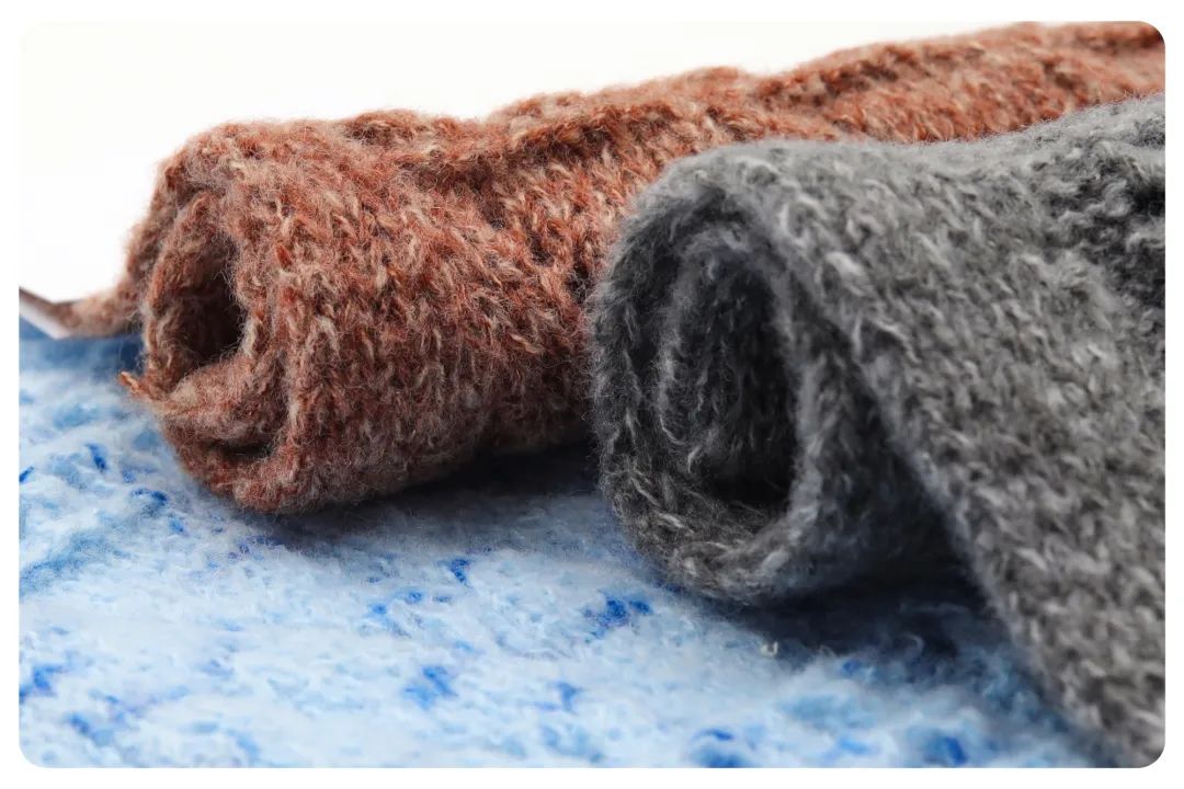 色泽饱满,手感软糯亲肤、毛感丰富、蓬松感极强,成衣轻盈有质感,织成的成衣穿着软软糯糯,舒适度非常好。