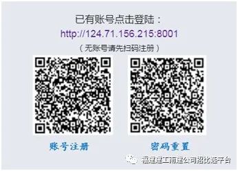 4.1 凡有意参加投标者,请扫描公告下方的二维码注册,并于招选公告开始至招选公告结束(2023年 9月 16 日 11:00 ),在福建建工集团建材电子采购平台(网址http://cl.fjjg.com.cn:8001)完成投标资格审查与招标文件获取。