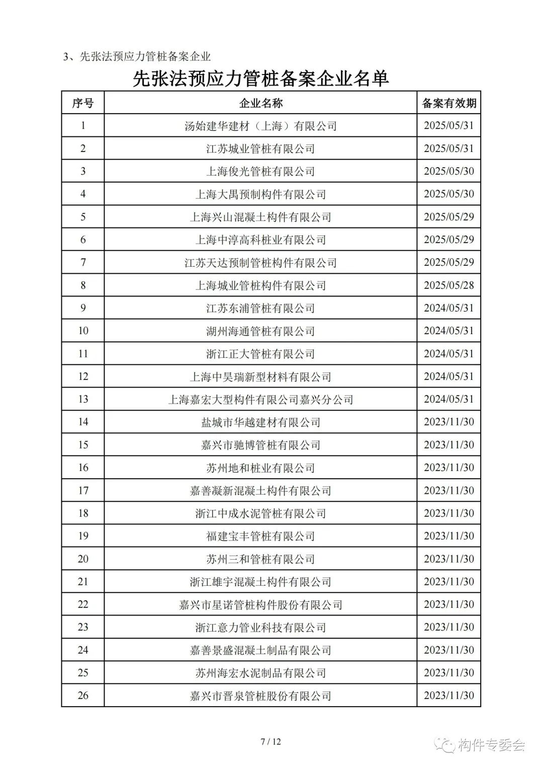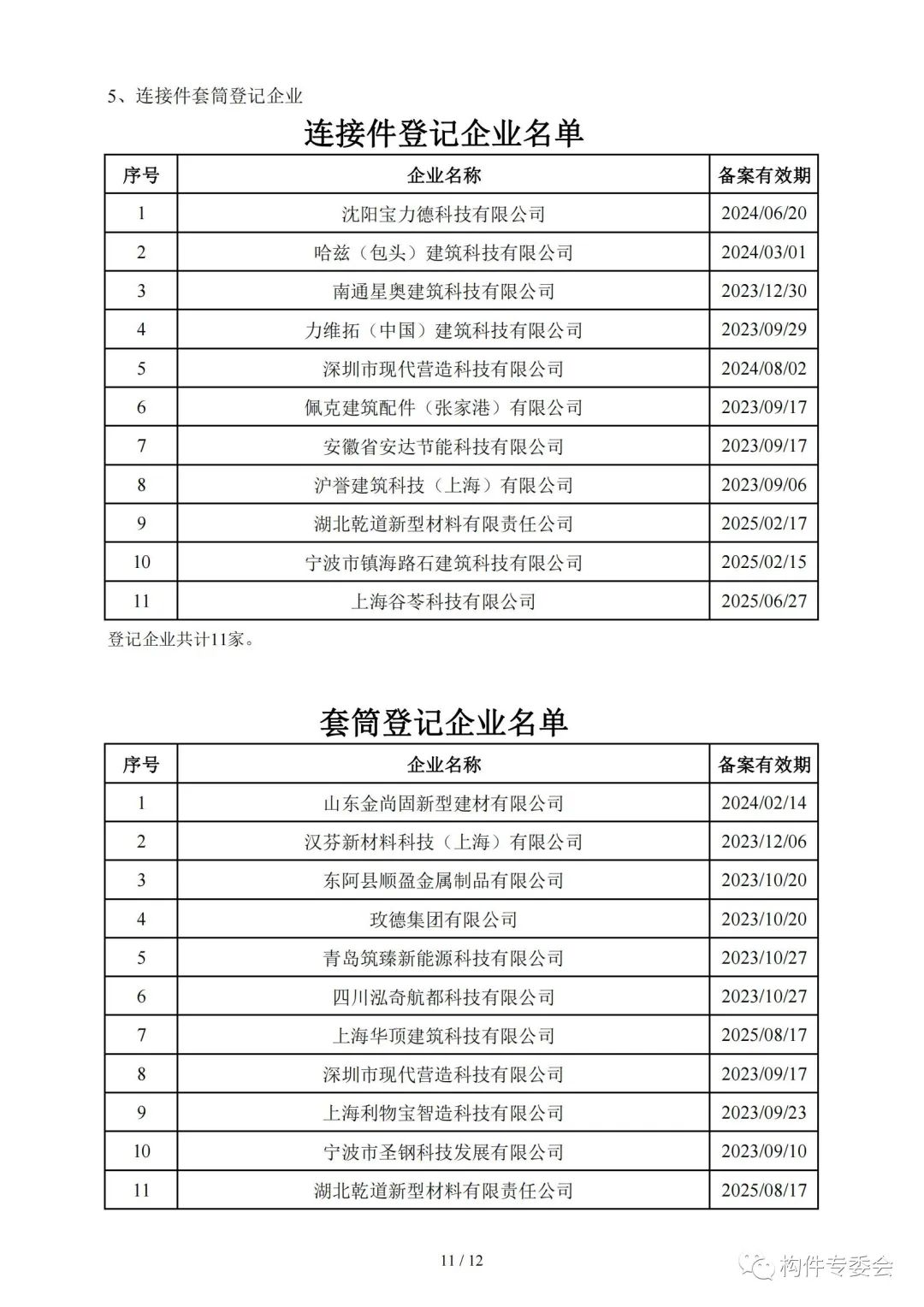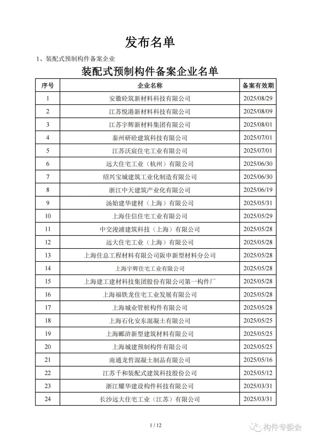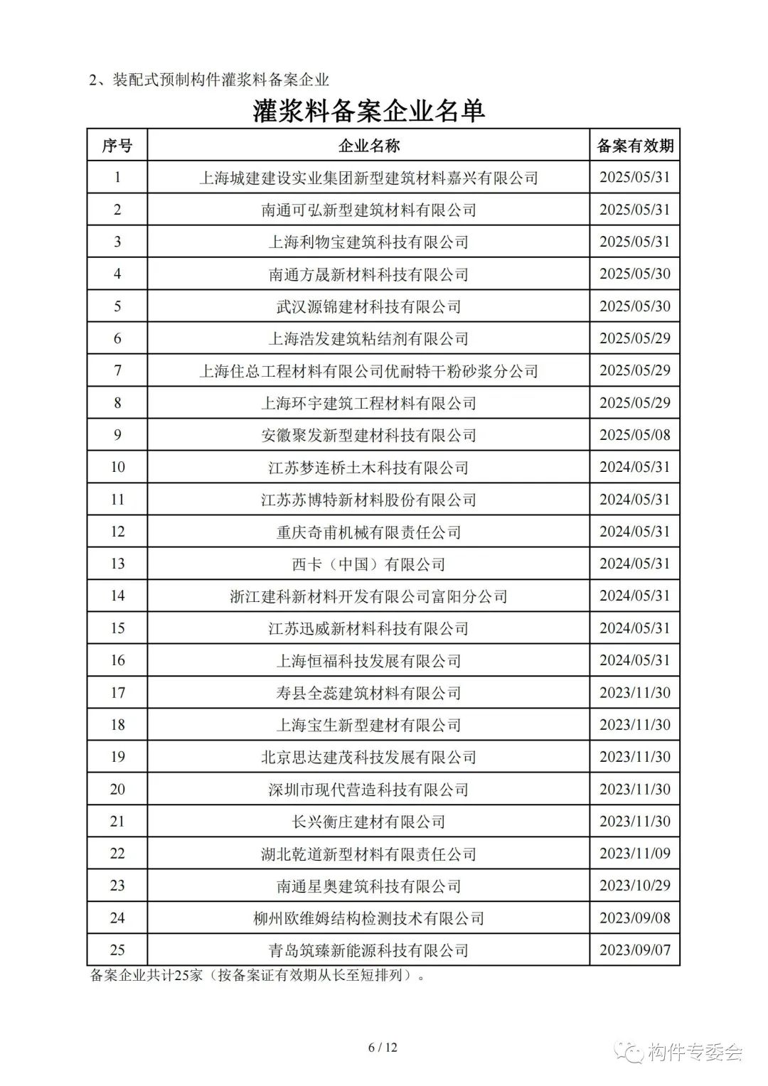 9月5日,上海市工程建设质量管理协会预制构件专业委员会发布备案企业名单。名单包括装配式预制构件备案企业、灌浆料备案企业、先张法预应力管桩备案企业、预制方桩备案企业、连接件登记企业以及套筒登记企业。名单如下: