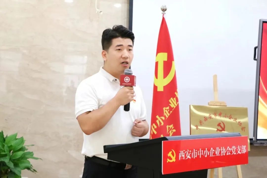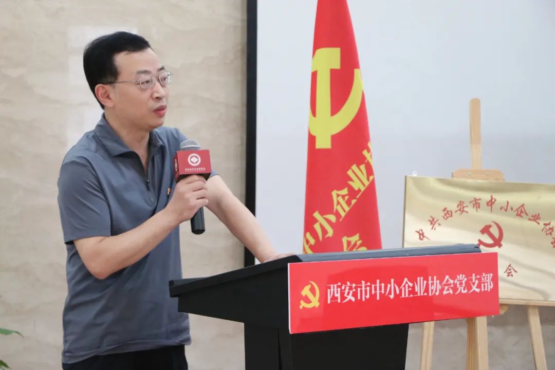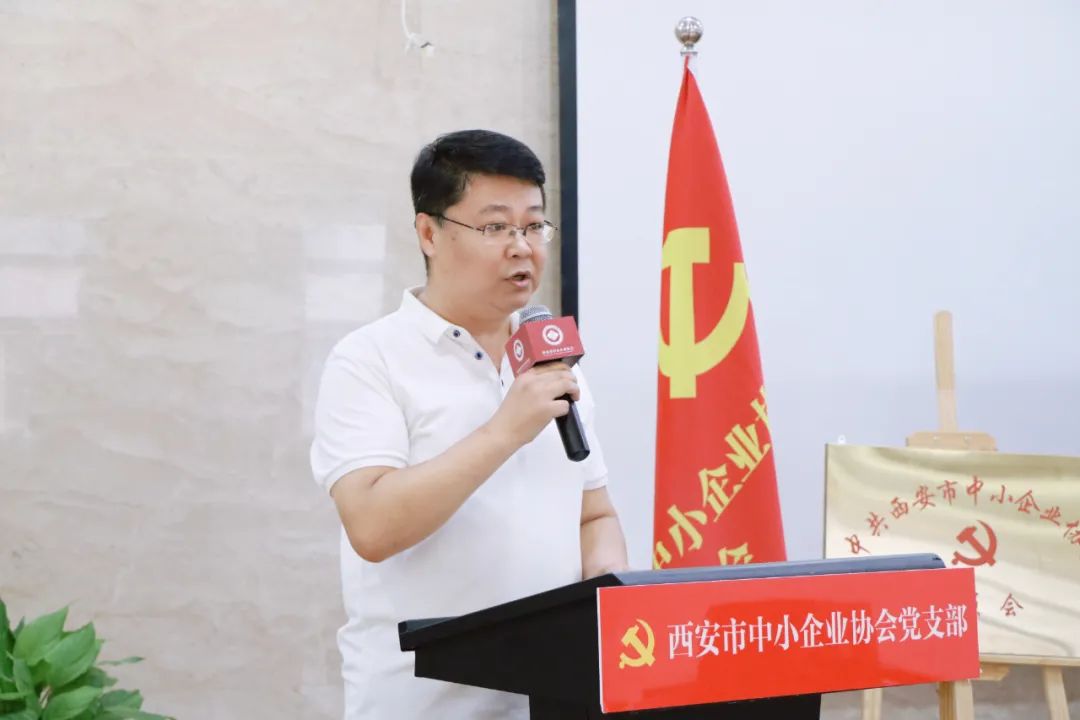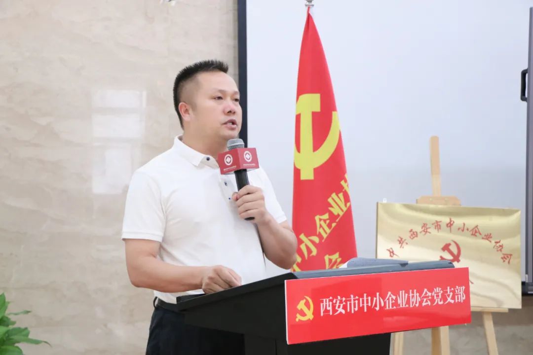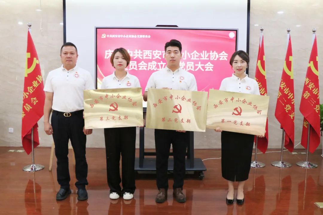 党委书记姜伟宣读关于成立中共西安市中小企业协会委员会成立三个党支部并为三个支部授牌。第一党支部书记李莎莎同志,第二党支部书记潘峥峥同志,第三党支部书记杨佳同志分别接受党组织授牌。同时,党委书记姜伟给予三个党支部厚望,在今后的工作开展中,夯实基础,发挥好支部战斗堡垒作用。