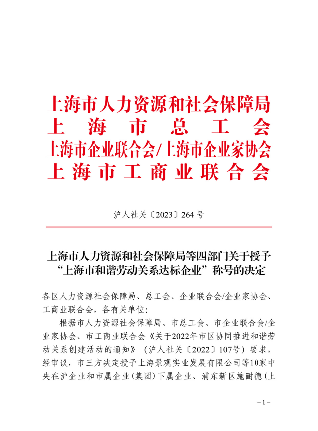 “上海市和谐劳动关系达标企业”称号