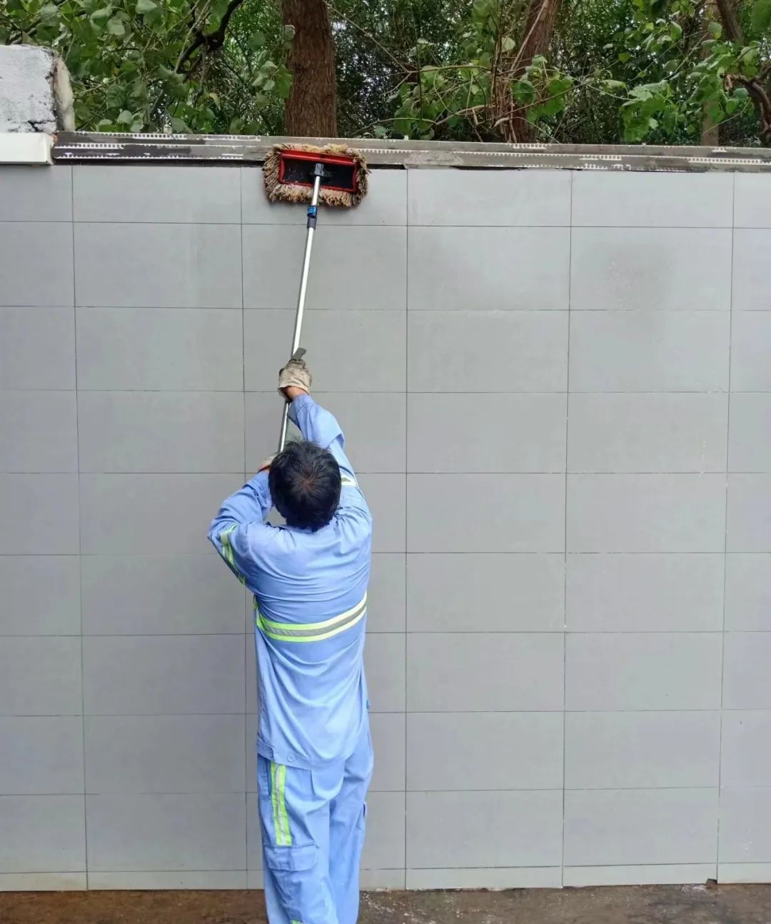 对车辆冲洗点及作业场所周边环境卫生等情况进行实地踏勘体验。在作业结束后,用刷子对地面进行除垢、用高压水枪冲洗净墙面和地面,最后用雾炮机喷洒除臭剂,保证场地和周边环境整洁,无异味。此外,严格污水处理达标后排放,牢守生态警示红线。