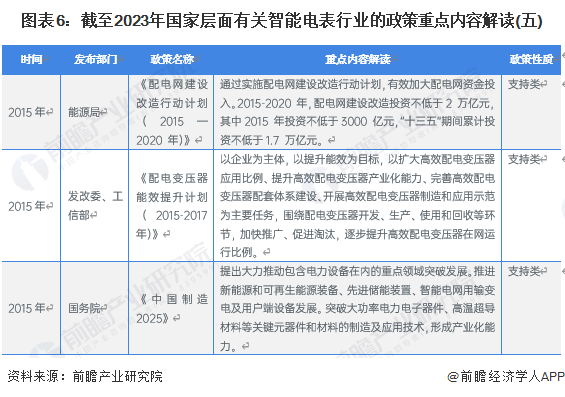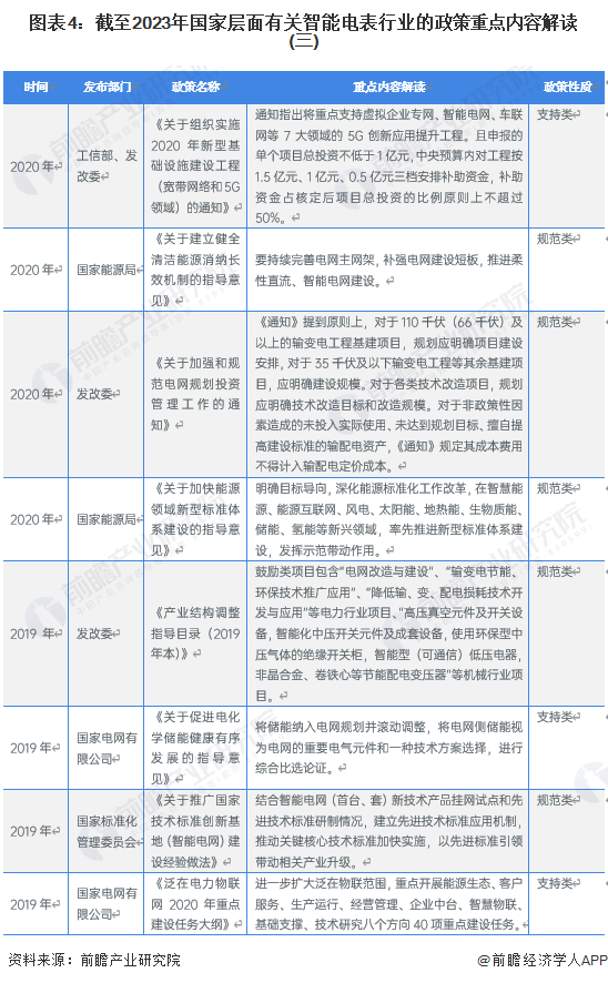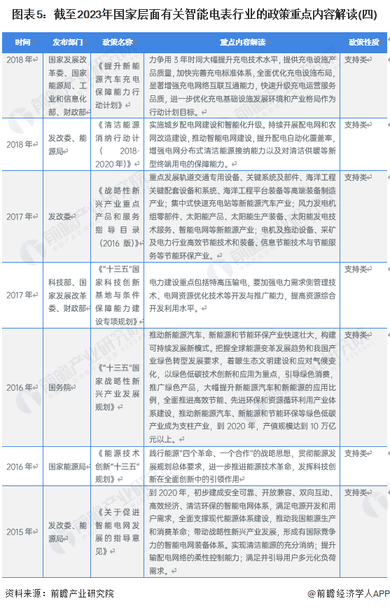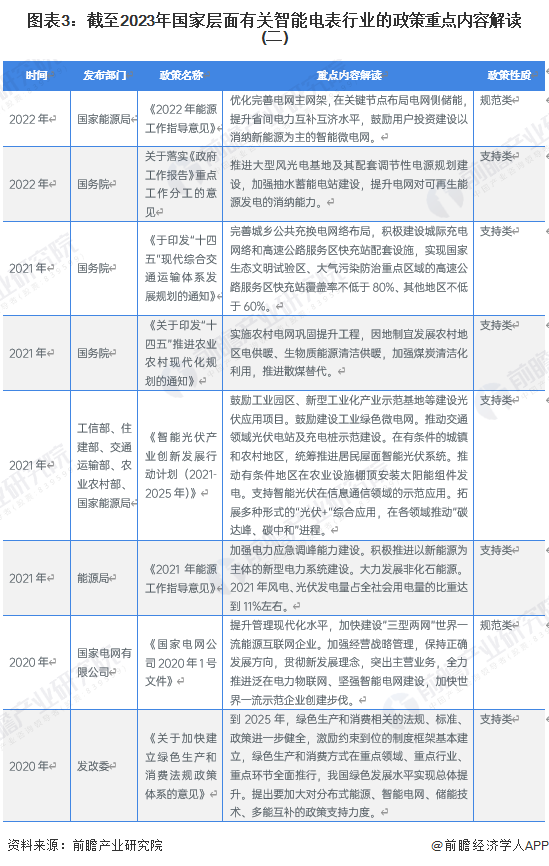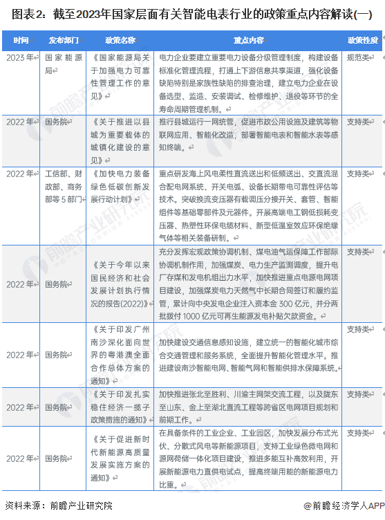智能电表行业是国家发展智能电网的前沿行业,受到国家政策大力支持,政策主要以支持类为主。截至2023年6月我国智能电表行业重点政策如下: