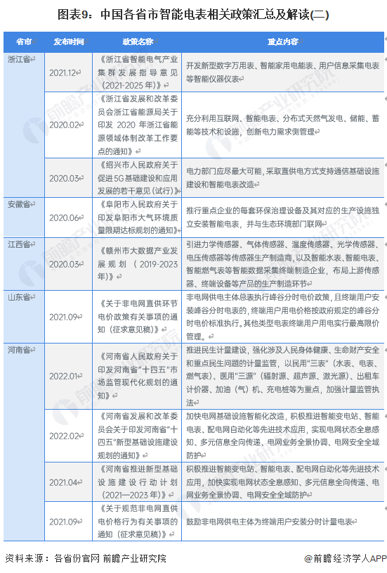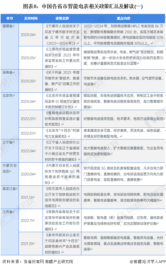 目前,我国主要省市智能电表相关政策如下表所示: