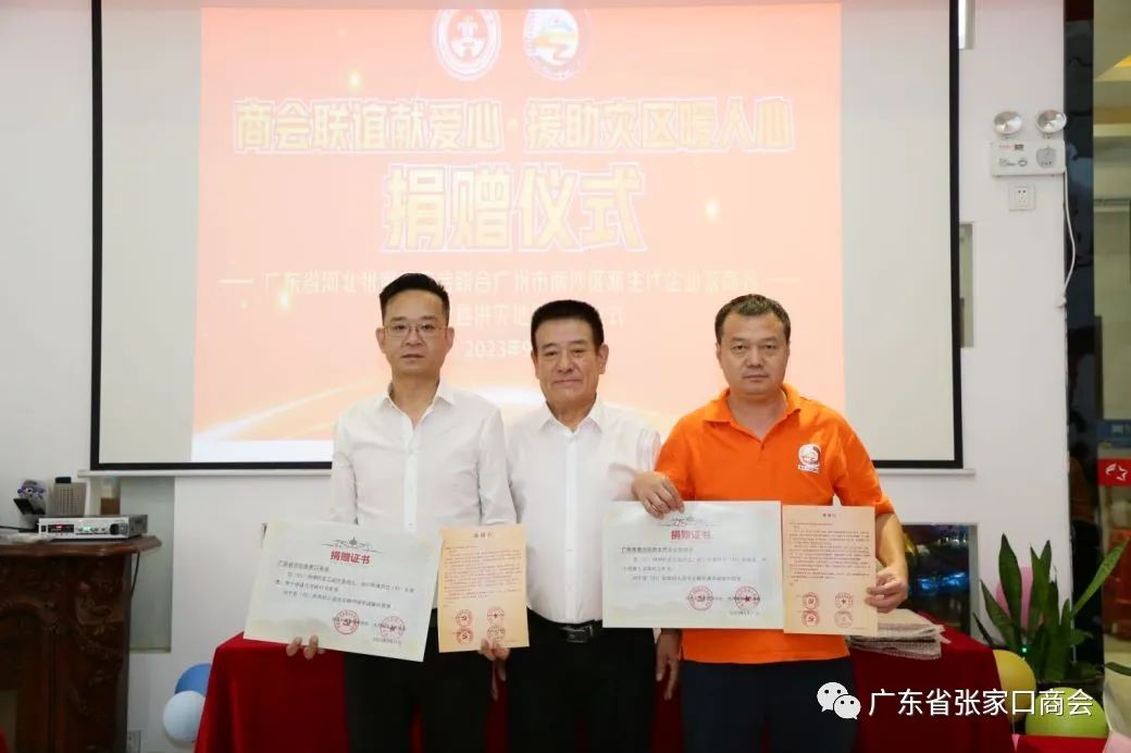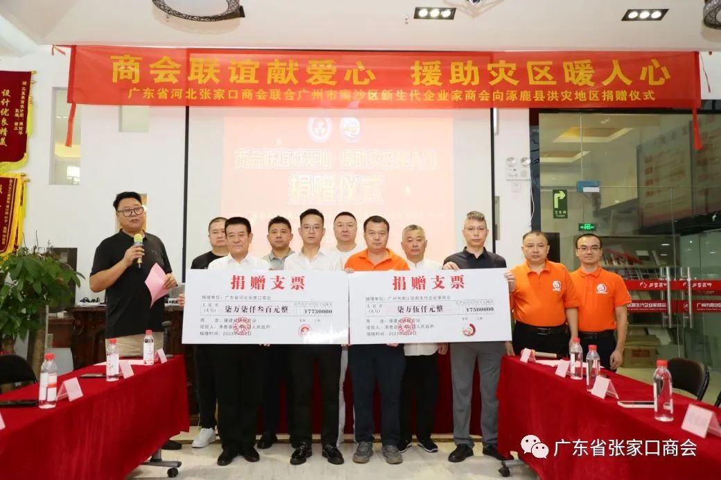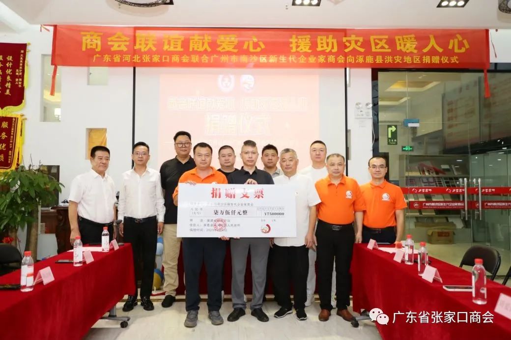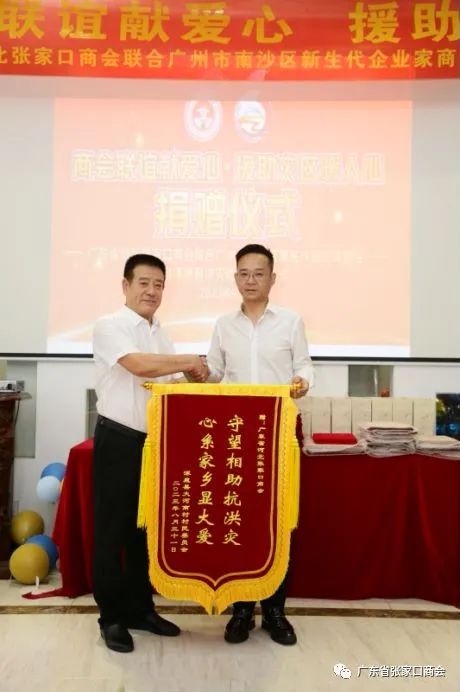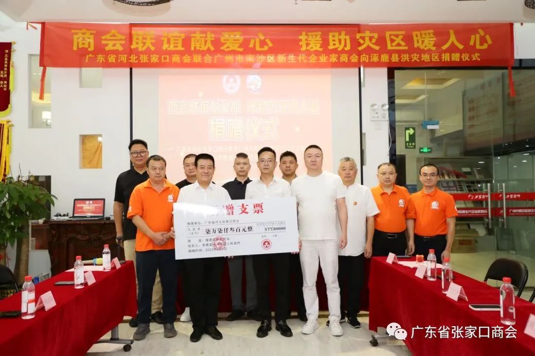 2023年9月6日上午,“商会联谊献爱心 援助灾区暖人心”----广东省河北张家口商会联合广州市南沙区企业家商会向河北省涿鹿县洪灾地区捐赠仪式在广州市南沙区举行!