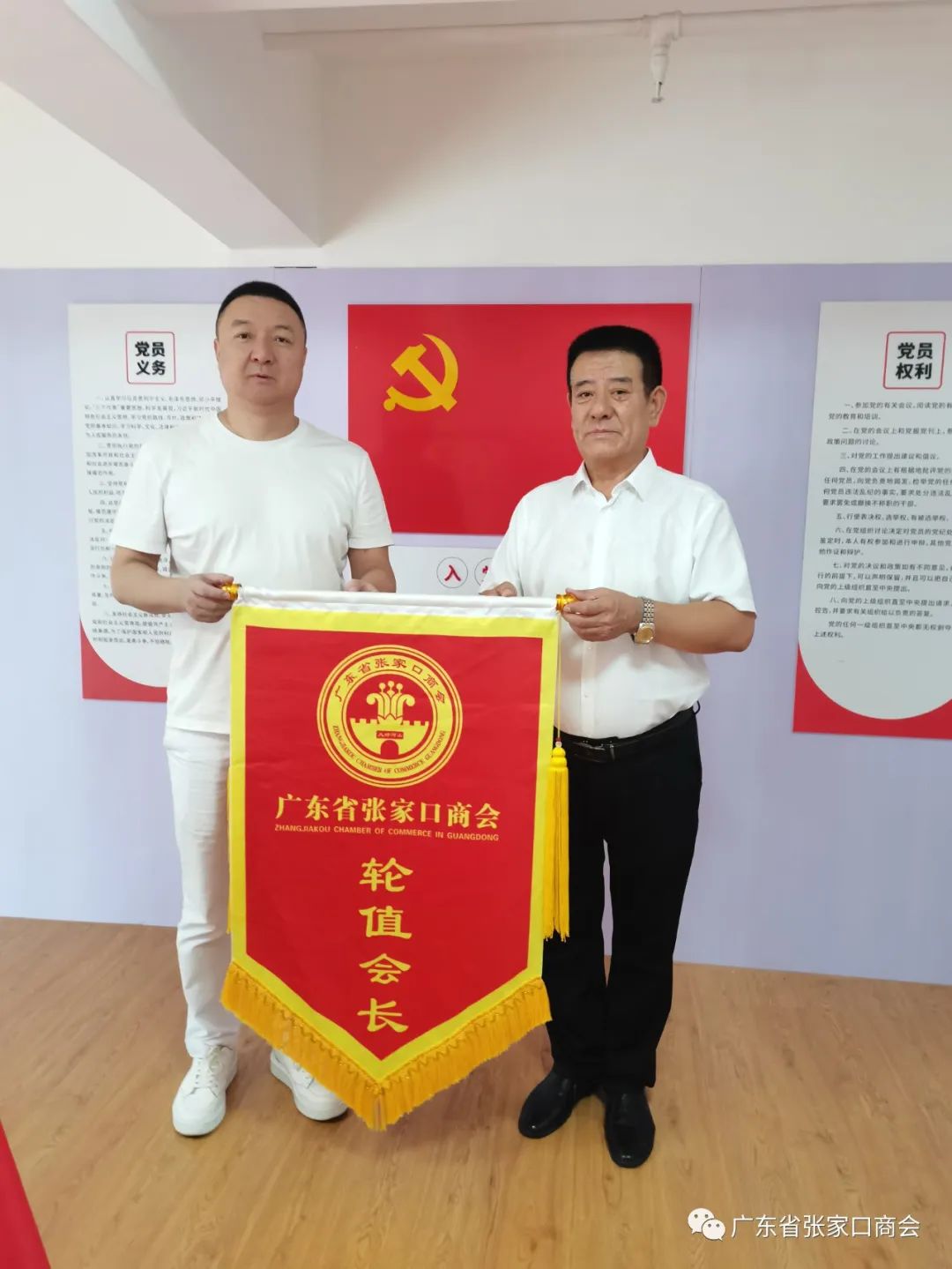 广东省张家口商会八月轮值会长杨圣林与九月轮值会长刘延忠交接仪式