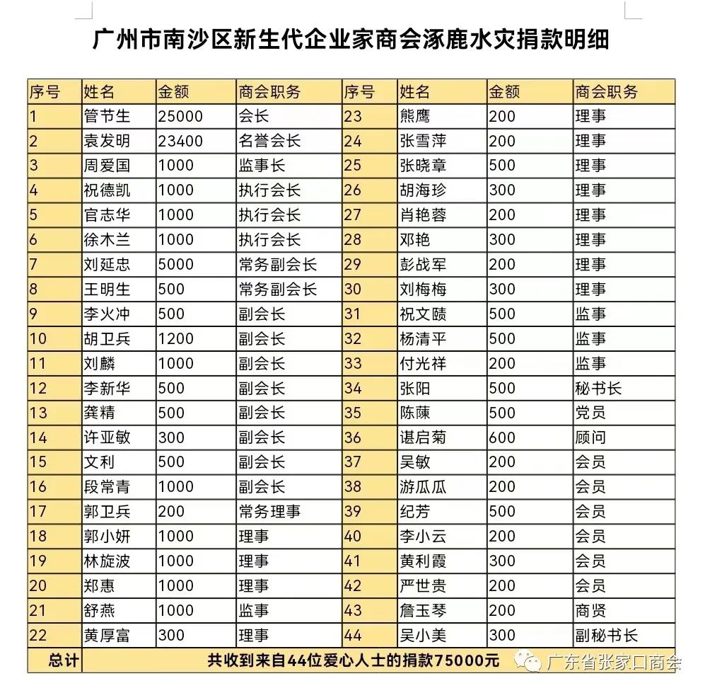 南沙区新生代企业家商会爱心人士捐款75000元