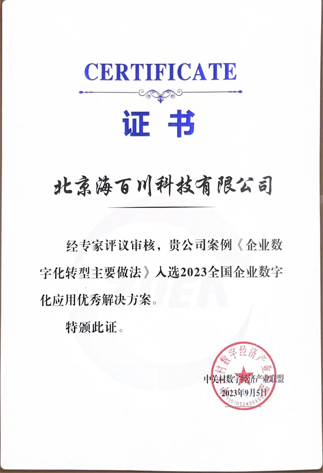 北京海百川科技有限公司申报的《企业数字化转型主要做法》成功入选全国企业数字化转型应用优秀解决方案,建设数字中国是建设社会主义现代化国家的必经之路,而数字经济正是建设数字中国最重要的引擎。北京海百川科技有限公司将抓住有利时机,保障数字化成果的有效落地,边创新边实践,树立更多行业应用典型,实现业务重塑、价值创新,助力数字经济的高质量发展,为企业数字化转型做出更大贡献。