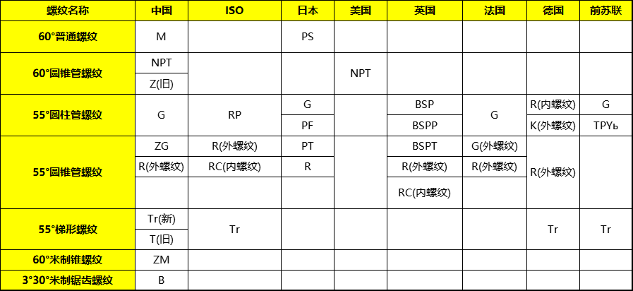 螺纹代号对照表
