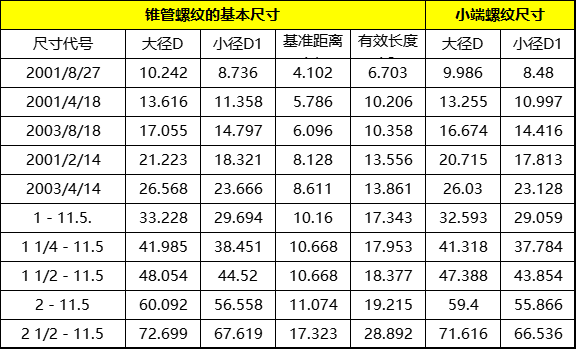 GB/T12716-1991常用60度圆锥管螺纹尺寸NPT
