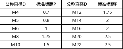 常用公制螺纹标准螺距M(粗牙)