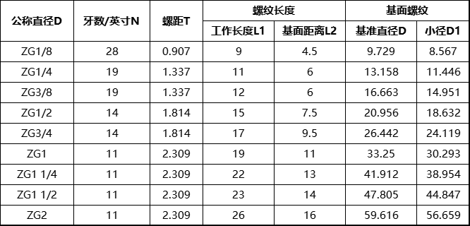 GB7306-1987常用55°圆锥管螺纹尺寸表(PT、ZG、R)