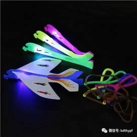 发光飞箭 颜色有,红 黄 蓝 绿 ,发货随机搭配。将彩色叶片折叠两下,按下灯开关,右手将弹力把手钩在小挂钩处,垂直向空中发射,可以飞到三四十米高,小叶片在空中展开并缓缓下降,在灯光映承下非常漂亮适合夜市,广场,公园。