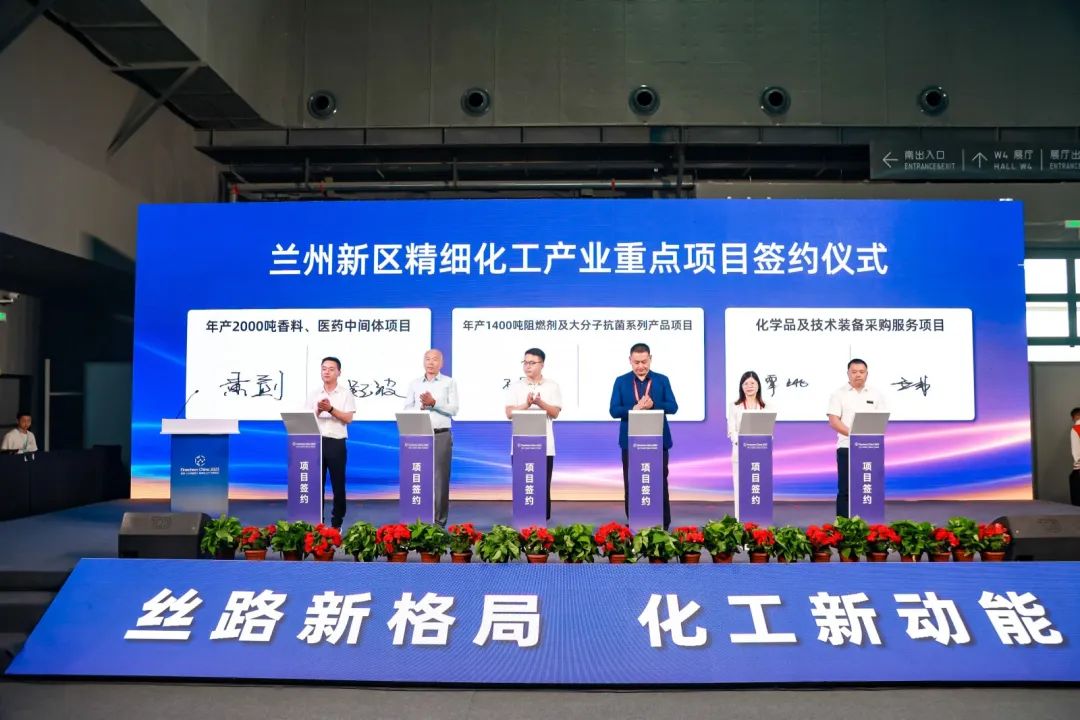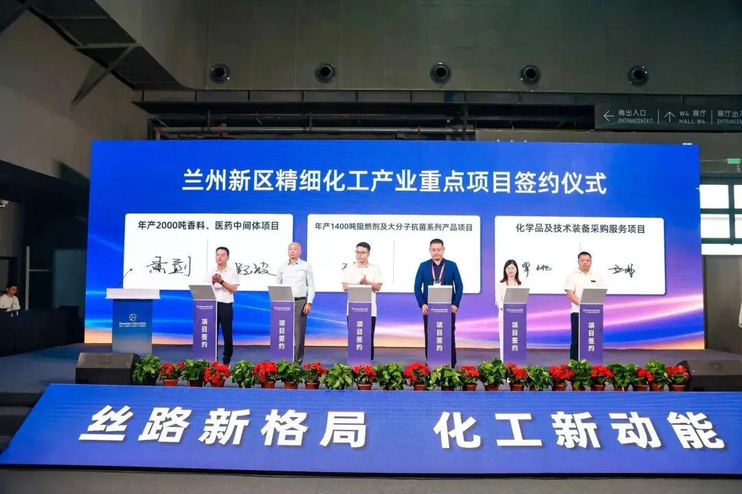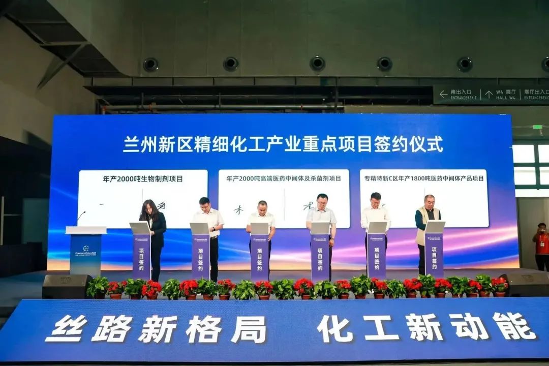 开幕式现场,兰州新区专精特新化工科技有限公司与绵津环保科技(上海)有限公司等多家企业签订一批涉及生物制剂、医药中间体等重点产业项目。
