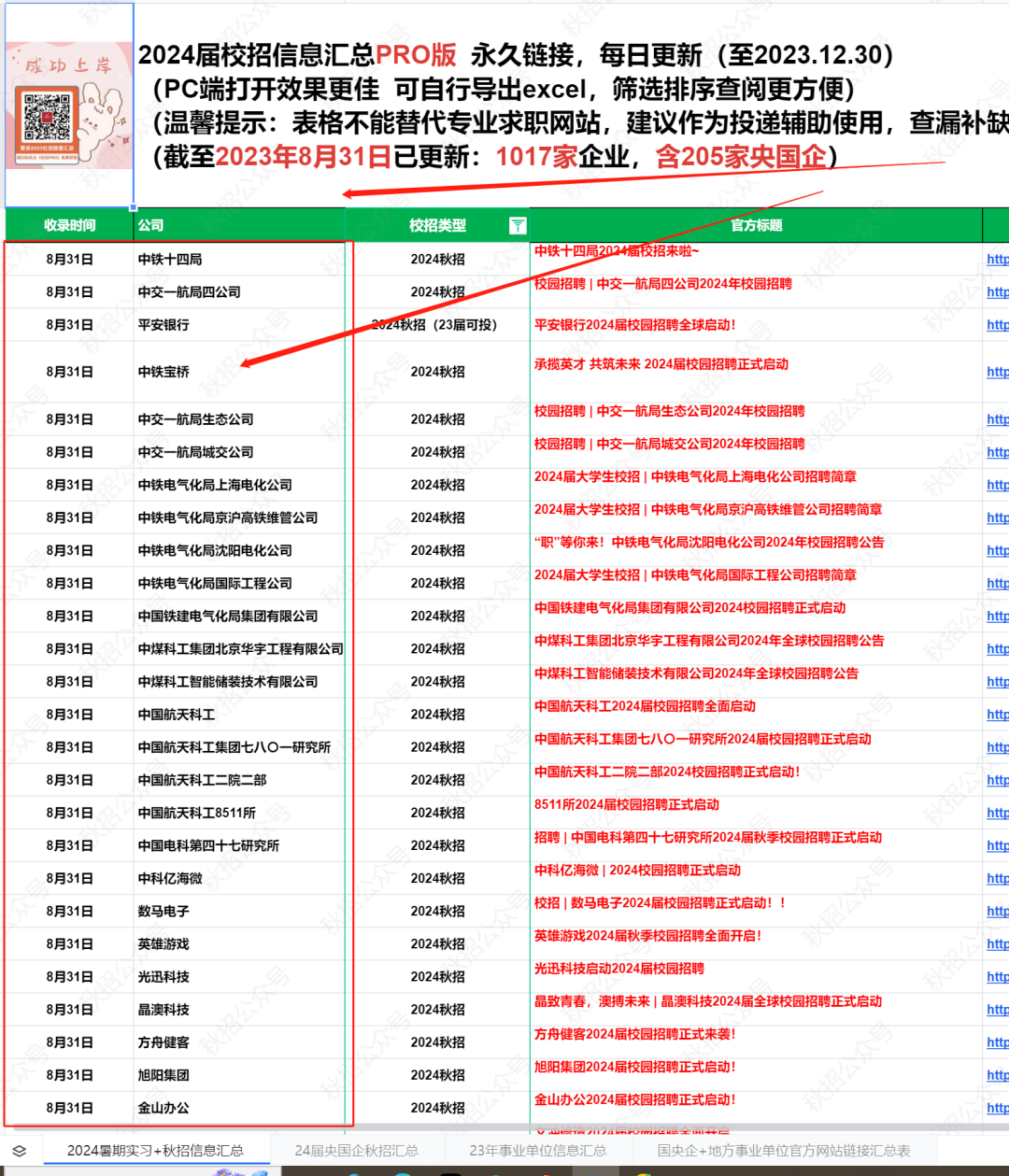 《2024届秋招汇总表PRO版》已正式开放订阅!