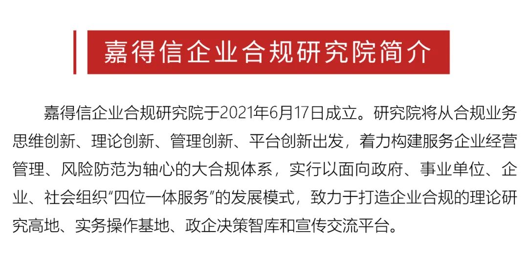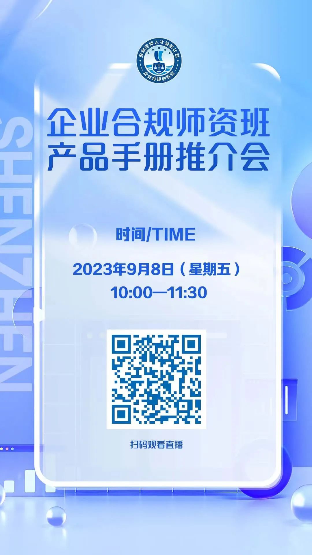 2023年9月8日上午十点,深圳市律协企业合规师资班将举行合规产品手册推介会,会上将由合规产品手册主编广东嘉得信律师事务所主任闵齐双以及三位编委介绍产品手册,并做主题分享。