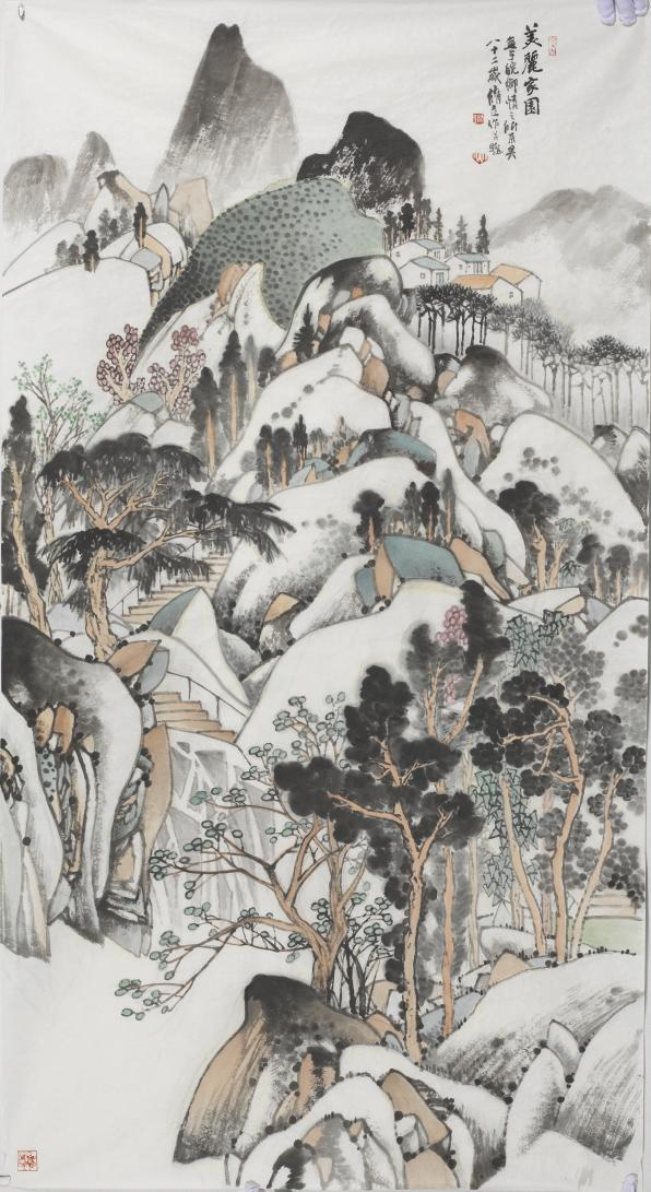 朱修立(1938-),上海人,1961年毕业于南京艺术学院并留校任教。1983年调入安徽省书画院专职创作,一级美术师。曾任安徽省政协委员、全国美展评委、安徽省美术家协会常务理事、中国科学技术大学客座教授。现为中国美术家协会会员、安徽美术家协会艺术顾问,享受国务院特殊津贴。作品曾被中国美术馆、大英博物馆、牛津大学阿什莫林博物馆、澳大利亚国家美术馆、新加坡国家美术馆等收藏。出版有《荣宝斋画谱(72)》《中国山水画课徒画稿》《以物写我——修立论画》等著作。