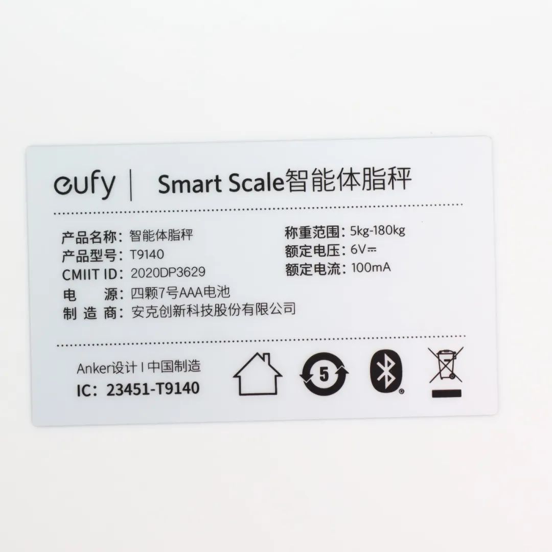 可以看到体脂称的参数!设计和制造商都是由ANKER完成。