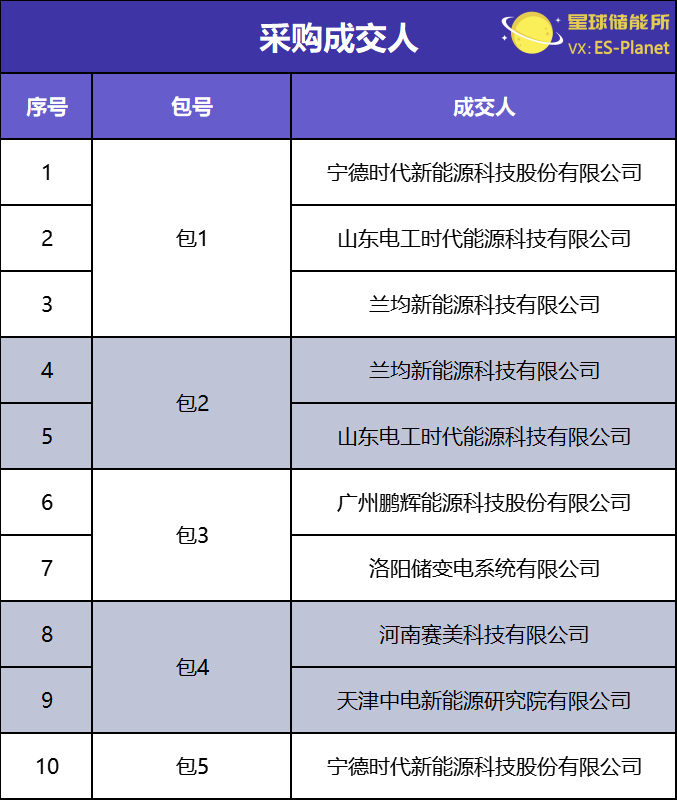 9月6日,中国电气装备集团有限公司储能用电池规模集中采购发布成交人名单公告。