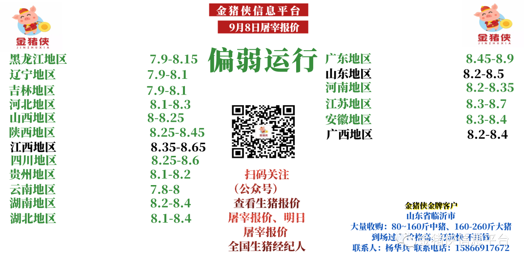 【金猪侠】9月8日屠宰企业收购价~【偏弱运行】
