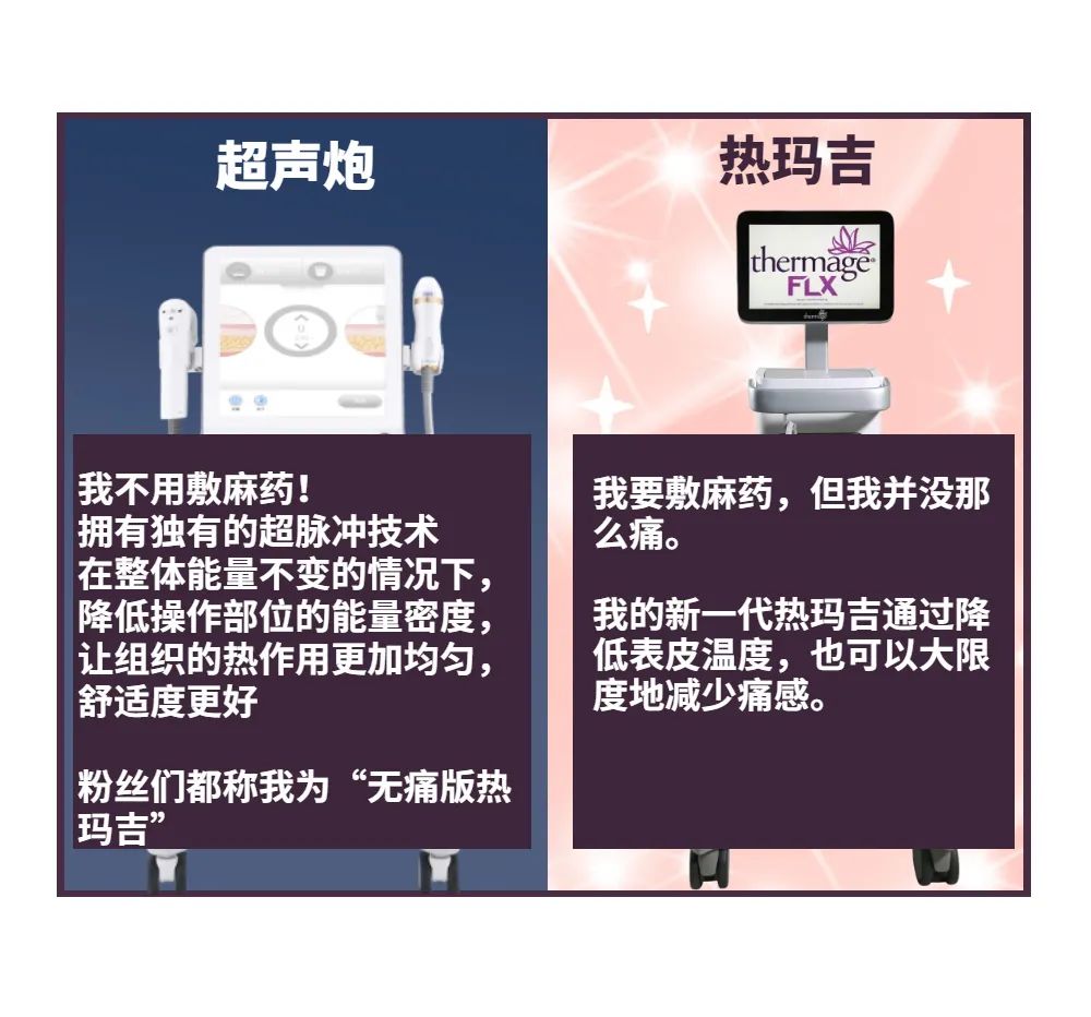 <超声炮(左图) 热玛吉(右图)>