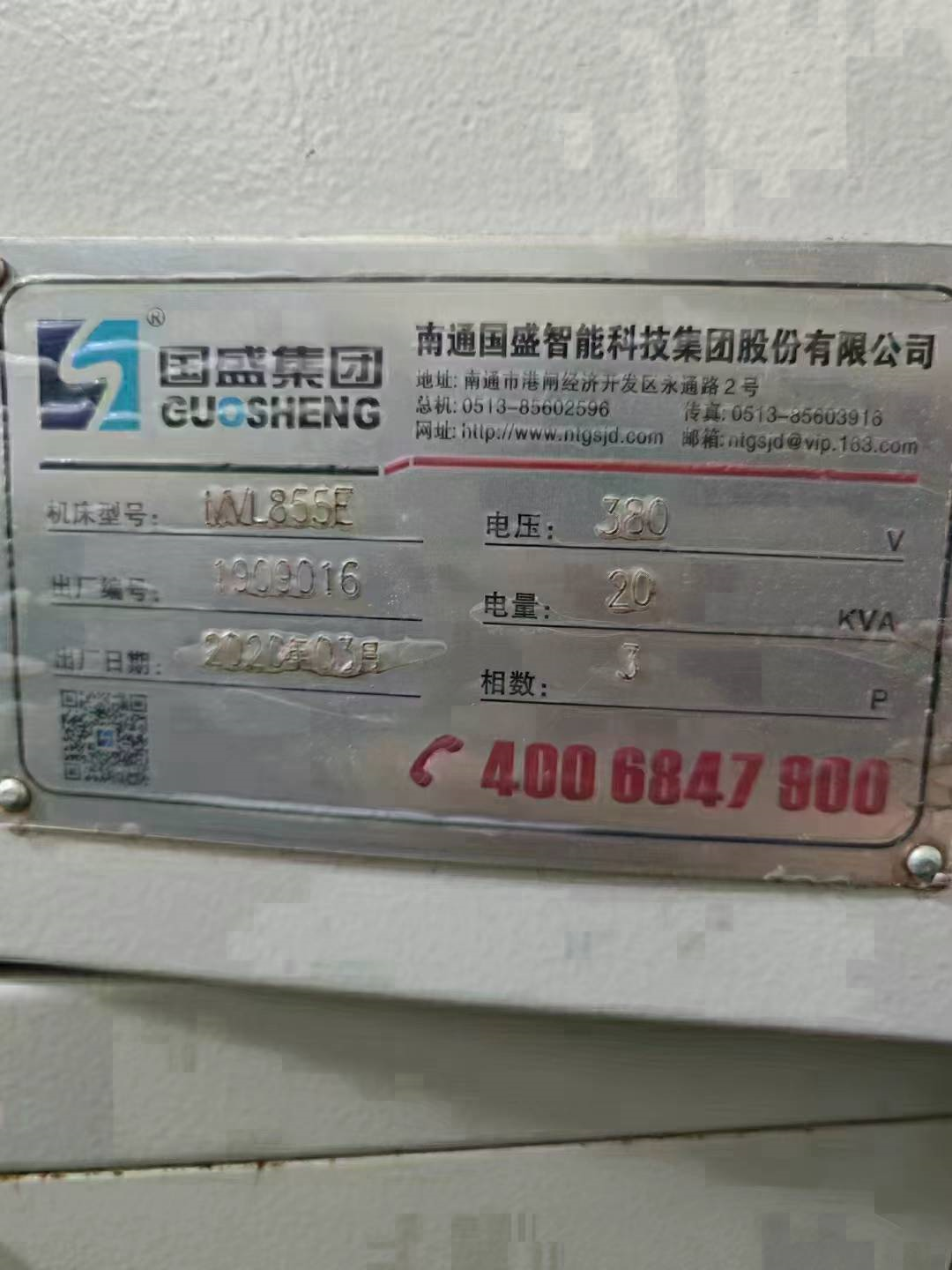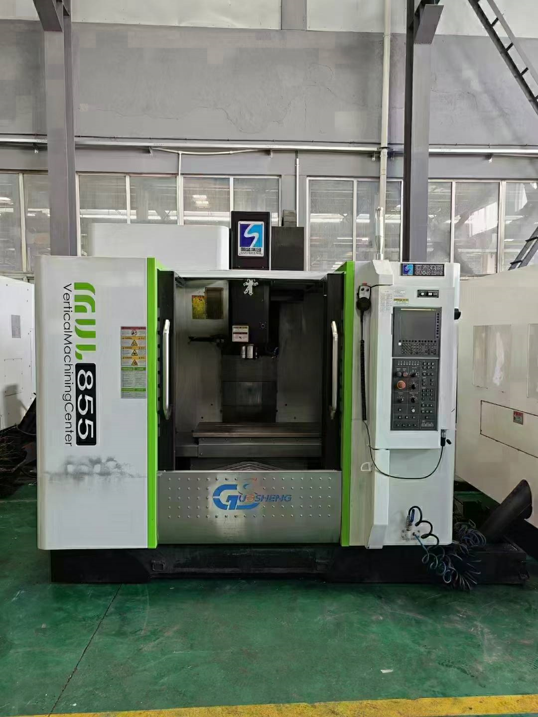 国盛855重型加工中心,工作台1050×500行程850×550×600,三轴45滚柱线轨,发那科MFplus系统,转速8000,24T机械臂刀库,主电机功率11/15KW,安装少用,准新机二手价! 需要联系18556783388