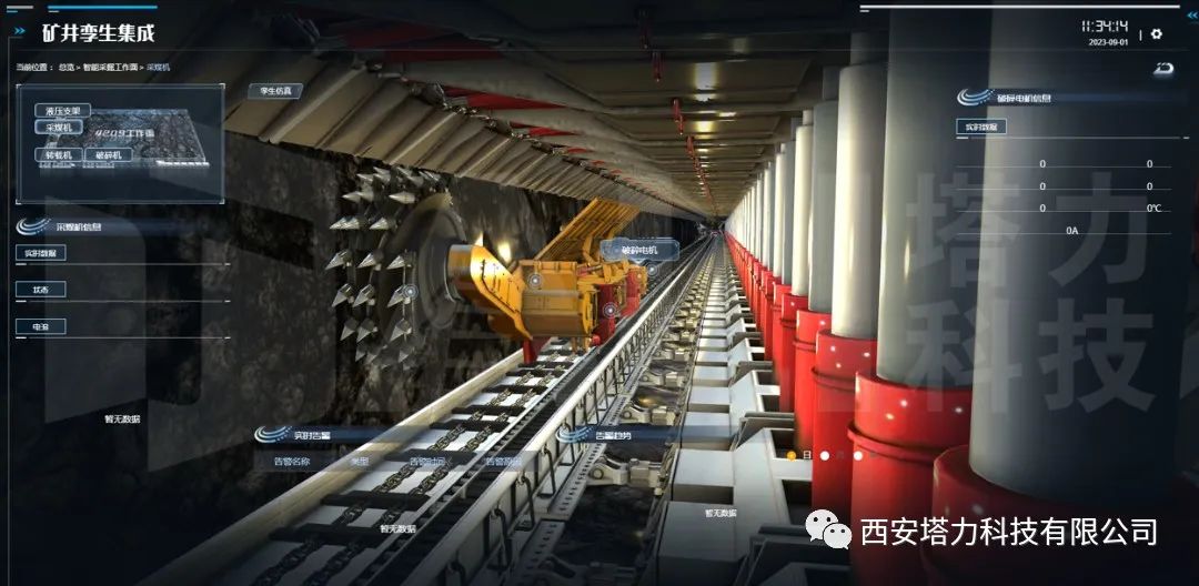 在本项目中,通过对采煤机传感器数据的采集,来进行物理系统的故障诊断。进而将物理面的数据通过数据总线传输到数字孪生虚拟系统。