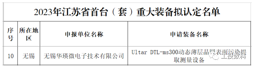 年江苏省首台(套)重大装备拟认定名单进行公示,无锡华瑛微电子技术有限公司的