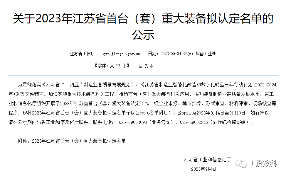 无锡工信:江苏省2023年首台(套)重大装备公示名单揭晓,无锡10家企业荣登榜单,全省第一!
