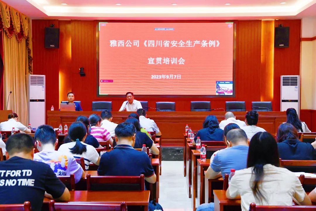 新修订的《四川省安全生产条例》将于2023年9月1日起正式施行。《四川省安全生产条例》(以下简称《条例》)共设7章78条,包括总则、生产经营单位的安全生产保障、从业人员的安全生产权利义务、安全生产的监督管理等。按照创建省级安全文化建设示范企业要求和年度安全教育培训计划,9月7日雅西公司组织开展《四川省安全生产条例》宣贯专题培训,公司安全环保部副部长潘川讲解宣贯。