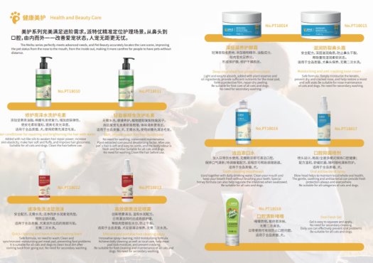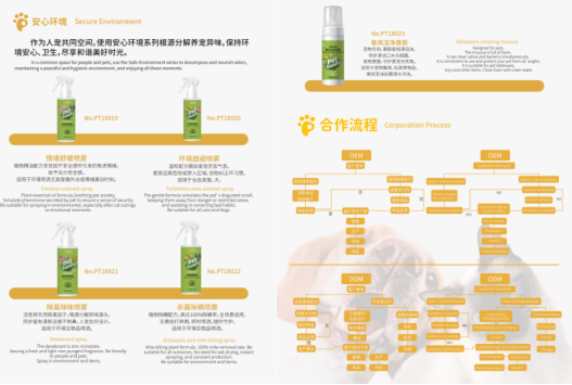 公司秉承专业对宠,诚信对人的经营理念,一切从宠物需求出发,提供OEM&ODM专业化一站式服务。以天然原料、专业品质和世界领先的研发技术为向导,竭力成为业内宠物科学洗护的先行者,开启宠物居家洗护新时代,提升宠物主人和爱宠的生活品质。