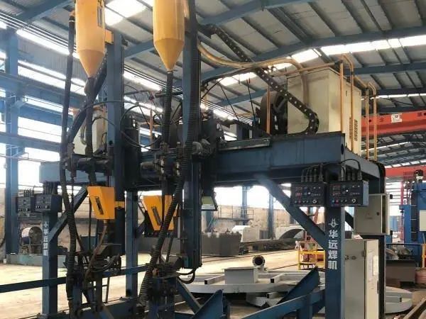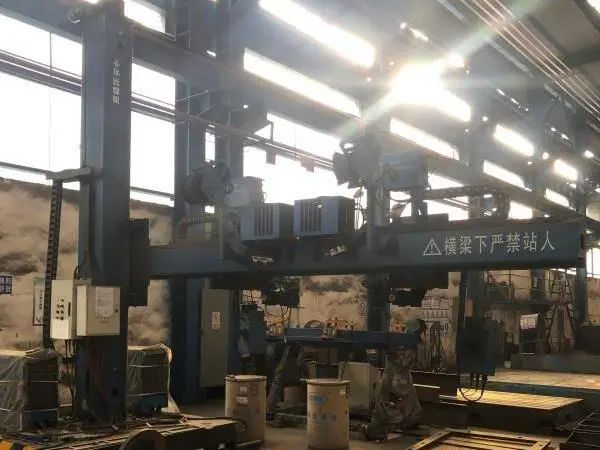 箱型构件生产线,主要设备包括:龙门式埋弧焊机1台、悬臂熔丝电渣焊机1台、轨道式 C02打底机1台和型钢组立机1台,箱型构件生产线主要参数为:焊接速度为300-1200mm/min,空行速度为2500mm/min(无级调速),工件长度为300-15000mm; 工件最大腹板厚度为6-40mm;门架移动速度为204-1000mm/min。